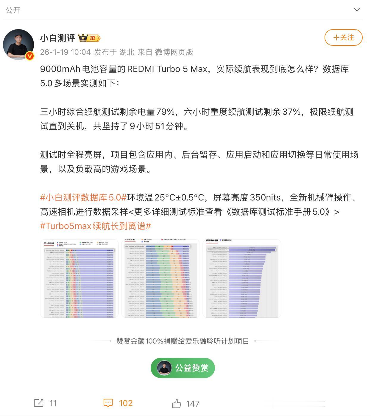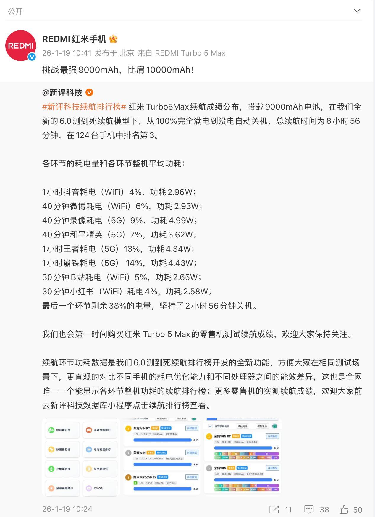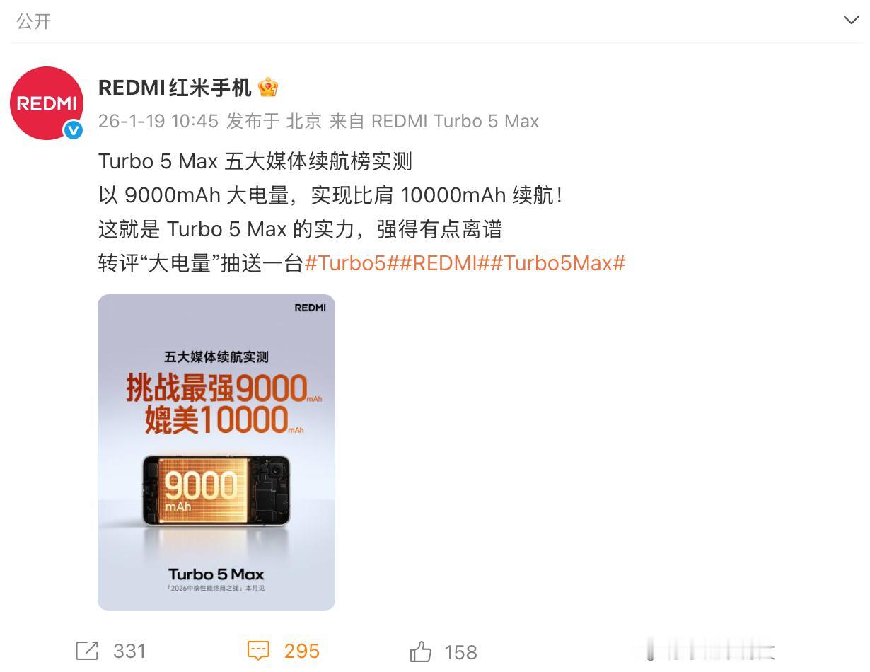 不仅是同档性能之王,还是续航之王!REDMI Turbo 5 Max搭载小米史上最大容量电池——9000mAh金沙江电池,从多个媒体实测来看,和很多10000mAh手机续航成绩差不多,这就是优化的能力,让9000mAh>10000mAh续航,天玑9500s+9000mAh,这套组合很实用
