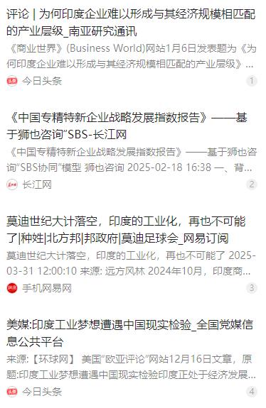 印媒研究中国崛起之路,得出一个令人绝望结论,想模仿中企太难了! 麻烦各位读者大大们点击一下右上角的“关注”,既方便您进行讨论和分享,又能给您带来不一样的参与感,感谢您的支持,小编在此先谢过了!   过去三十年里,印度的主流媒体和各类智库没少下功夫,一直盯着中国制造业的崛起路径反复研究。毕竟印度自己也有大批中小微企业,可就是没法复制 “中国制造” 的成功,这成了他们心里的老大难问题,也正是研究的核心动力。   一开始,不少印度研究者把差距归为起步时间晚、外资投入规模小、政府补贴力度不够这些表面原因。但随着研究越深入,他们慢慢发现,这些都不是关键,中国制造业真正的王牌,是县域级就能顺畅运转的全球产业链系统能力。   这种能力说起来不复杂,核心就是高度集聚又分工明确的区域产业集群。在中国,不管是长三角的电子产业带,还是珠三角的制造业集群,企业之间不是孤立的,而是形成了紧密的供应链网络,上下游配套一应俱全。   就拿一个简单的零部件来说,在浙江义乌或者广东东莞,企业不用跑远,周边几十公里内就能找到合适的供应商、加工厂和物流渠道,效率高还能控制成本。这种协同效应,让很多中小企业得以专注细分领域,慢慢成长为 “专精特新小巨人”。   反观印度,情况完全不同。他们的中小微企业大多分散在各地,像一盘散沙,既没有形成产业集聚,也缺乏完善的配套支持。一家生产电子元件的印度企业,可能要跨越几个邦才能买到所需的原材料,物流成本高不说,交货周期还没保障。   这种分散孤立的状态,让印度中小企业只能局限在本地市场打转,根本没能力参与全球竞争。世界银行的数据显示,中国贡献了全球近 30% 的制造业产出,而印度占比仅约 3%,差距背后正是产业生态的鸿沟。   更让印度研究者感慨的是,中国的产业链优势不是一朝一夕建成的。几十年来,不管是哪届政府,都延续着产业集群的发展战略,跨周期、跨区域统筹规划,一点点搭建起完整的工业体系。   从早期的 “村村点火、户户冒烟”,到后来的园区化集聚,再到如今的数字化协同,中国的产业政策始终围绕着产业链完善、供应链稳定做文章。像成渝双城经济圈的 “专精特新联合体”,就通过共享平台让成员企业成本下降 12%,交付准时率提升至 95%。   而印度的情况恰恰相反,联邦制下各邦各自为政,政策割裂严重。泰米尔纳德邦用免税政策吸引企业,隔壁的卡纳塔克邦就加码补贴抢资源;北方邦突然对工业用地加征 “发展税”,让企业措手不及。   这种零和博弈式的竞争,彻底破坏了制造业所需的系统能力和韧性。莫迪政府曾推出 “生产挂钩激励计划”,投入 230 亿美元想扶持制造业,可最终产值仅完成目标的 37%,制造业占比不升反降。   印度的监管环境也让企业难成规模。雇员达到 50 人就要遵守更严格的合同工管理规定,超过 10 人就得强制参保,这些制度性 “断崖” 让企业家宁愿维持小规模,也不敢轻易扩张。   金融体系也不给力,要么是风险资本追逐短期高回报的科技项目,要么是国有银行只愿给有抵押的大企业贷款,制造业升级需要的中长期 “耐心资本” 严重缺失。没有资金支持,中小企业想升级技术、扩大规模难如登天。   还有社会层面的制约,种姓制度像无形的墙,把劳动力分割开来。高种姓监工与低种姓工人的矛盾时常导致产线停摆,女性劳动参与率仅 19%,相当于浪费了大量潜在劳动力。   教育体系的双轨制也拖了后腿,顶级私立学校培养的精英大多流向硅谷,公立学校却连基础技能都教不好,流水线上的技工不少连游标卡尺都读不准,难以满足制造业升级的需求。   基础设施的短板同样明显,印度的物流成本居高不下,跨邦运输要经过多道关卡,港口拥堵、道路不畅是常态。而中国凭借高效的港口、铁路和高速公路网络,大幅降低了物流成本,为产业链协同提供了保障。   在稀土等关键矿产资源上,印度也高度依赖进口,而中国拥有完整的开采和加工体系,这让印度的电子、新能源产业时常面临供应链中断的风险。   经过这么多年的全面研究,印度媒体和智库不得不得出一个近乎 “绝望” 的结论:中国制造根本不是能简单模仿的路径,而是一套需要长期投入、多方协同的系统工程。   印度不缺人口、不缺市场,也不缺发展制造业的意愿,但恰恰缺少把这些要素拧成一股绳的能力。从政策统筹到产业集聚,从供应链配套到劳动力素质,每一个环节的差距都不是短时间能弥补的。   中国制造业的成功,是制度优势、长期战略、市场活力和无数企业努力的共同结果。这种系统性的能力,不是靠复制政策、投入资金就能快速获得的,这也是印度想模仿却始终难以突破的核心瓶颈。