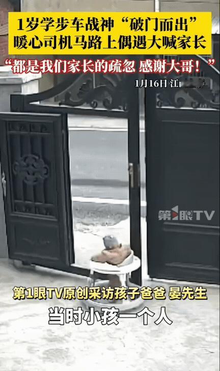 太万幸了!江西宜春,家长在厨房做饭就将1岁宝宝独自放在院子里的学步车上车玩耍,万