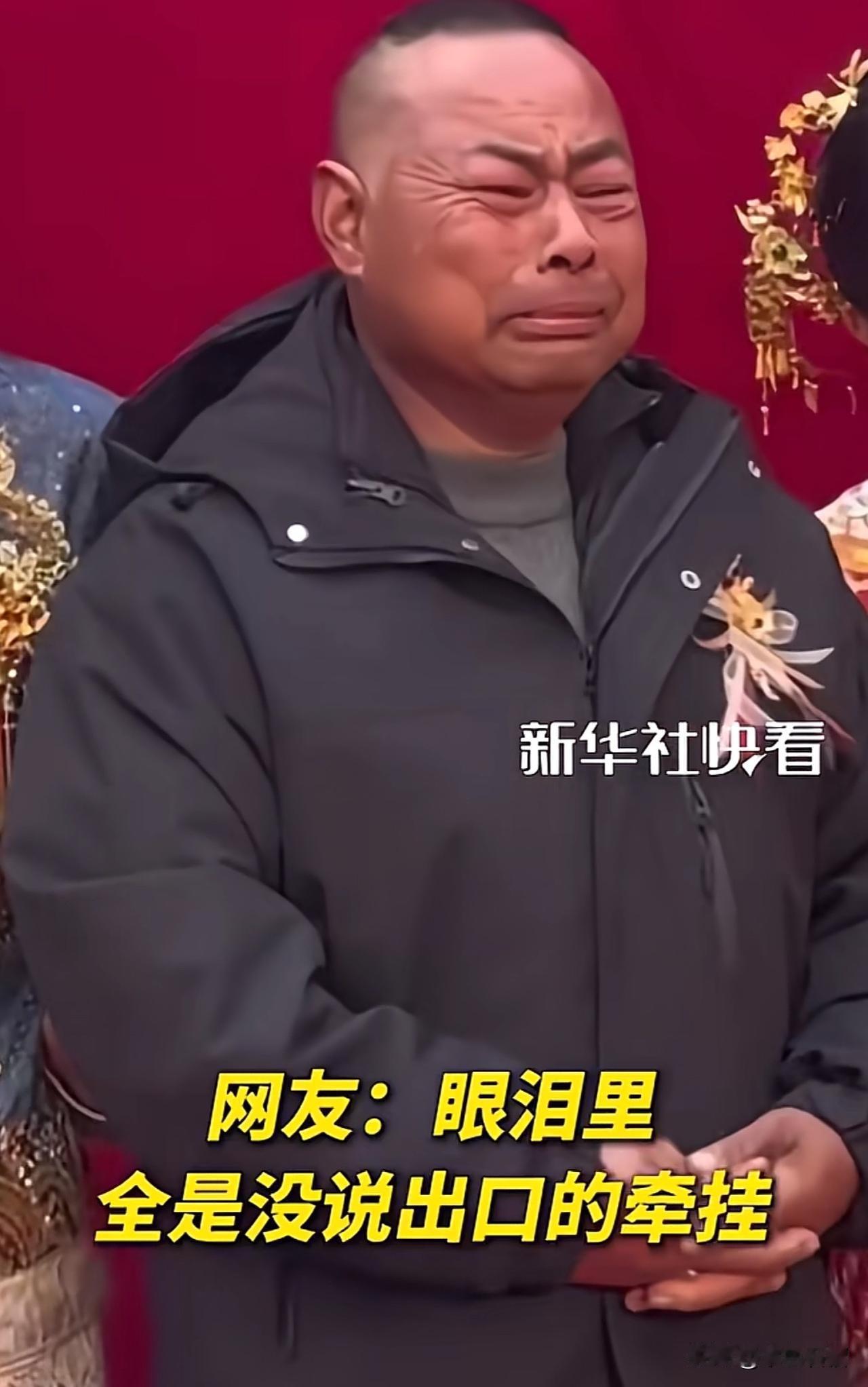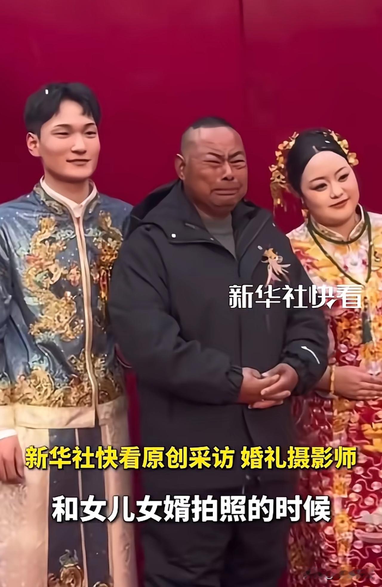 这个爸爸火到新华社去啦! 起因是一名单亲爸爸来参加女儿的婚礼,当和女儿女婿一起合影时,他再也憋不住哭出声来,硬生生把自己哭成了表情包。 据这场婚礼的摄影师说:这个爸爸很不容易,一个人把女儿拉扯大,送女儿出嫁的时候,他的情绪再也绷不住了。这一哭,是对女儿的不舍,也是心事已了的心安,更是对女儿没说出口的牵挂。 对此,有网友评价: “父爱如山母爱如水,可是这位父亲一人分担两个角色,所经历的太不容易了。” 还有网友说: “养儿方知父母恩,一个人养大孩子的不管是母亲还是父亲都特别伟大。” 希望新娘子结婚后能抽空多陪陪父亲,让父亲晚年能过得幸福。 对此,大家有什么想说的?欢迎评论区交流。 (图片来源:新华社)