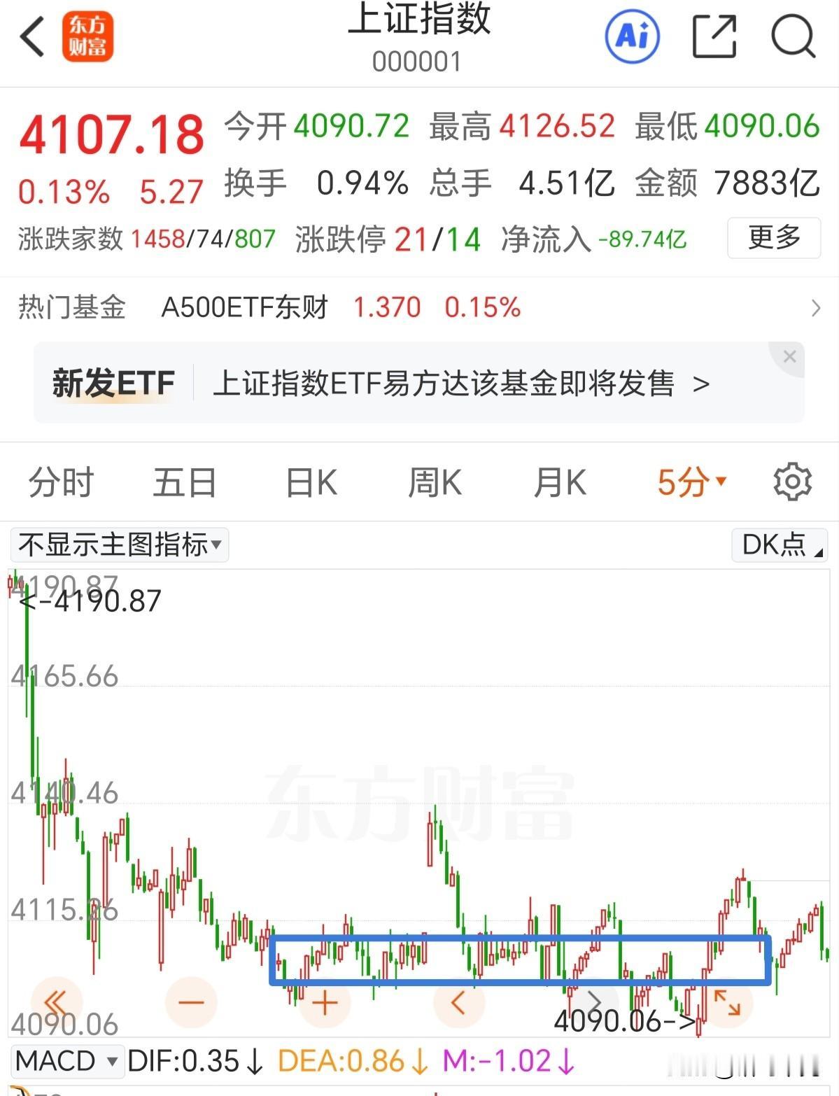 当成中枢扩展看,优先向上看反弹,反弹要把做T的仓位及时卖出。 早盘低开高走,缩量反弹是很难一次性过去的,上面的套牢盘太多了。做涨多了减一点仓,跌多了加点仓,多做T吧。 结构上,形成了中枢扩展,空间没有打出来,耐心等一等。以4090点为起点,是还可以看一波向上反弹的,还是要以卖出为主,先看一波日线的ABC调整。 也不要太悲观,看看现在的人民币汇率还在走低,股市不会那么差的,现在就是主力在压盘。从ETF可以看到,主力资金在沪深300和上证50进行了大换手。作为散户,耐心等待就行。 市场筑底回升 补涨策略 市场量能分析 收盘前策略 反弹大盘 板后低吸 板块机会分析