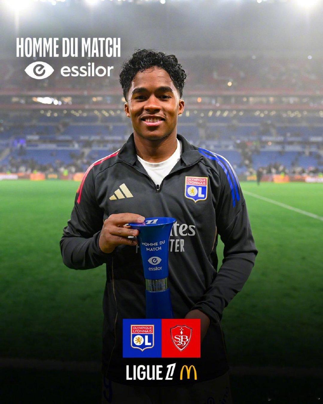 【表现不错】法甲第18轮,里昂2比1布雷斯特,从皇马租借来的恩德里克首发出战89分钟,助攻一次,射门4次,射正2次,触球84次,尝试过人17次,成功9次,制造机会5次,此外还有2次铲球和2次拦截,5次抢回球权,地面一对一25次,成功13次,当选全场最佳。法甲