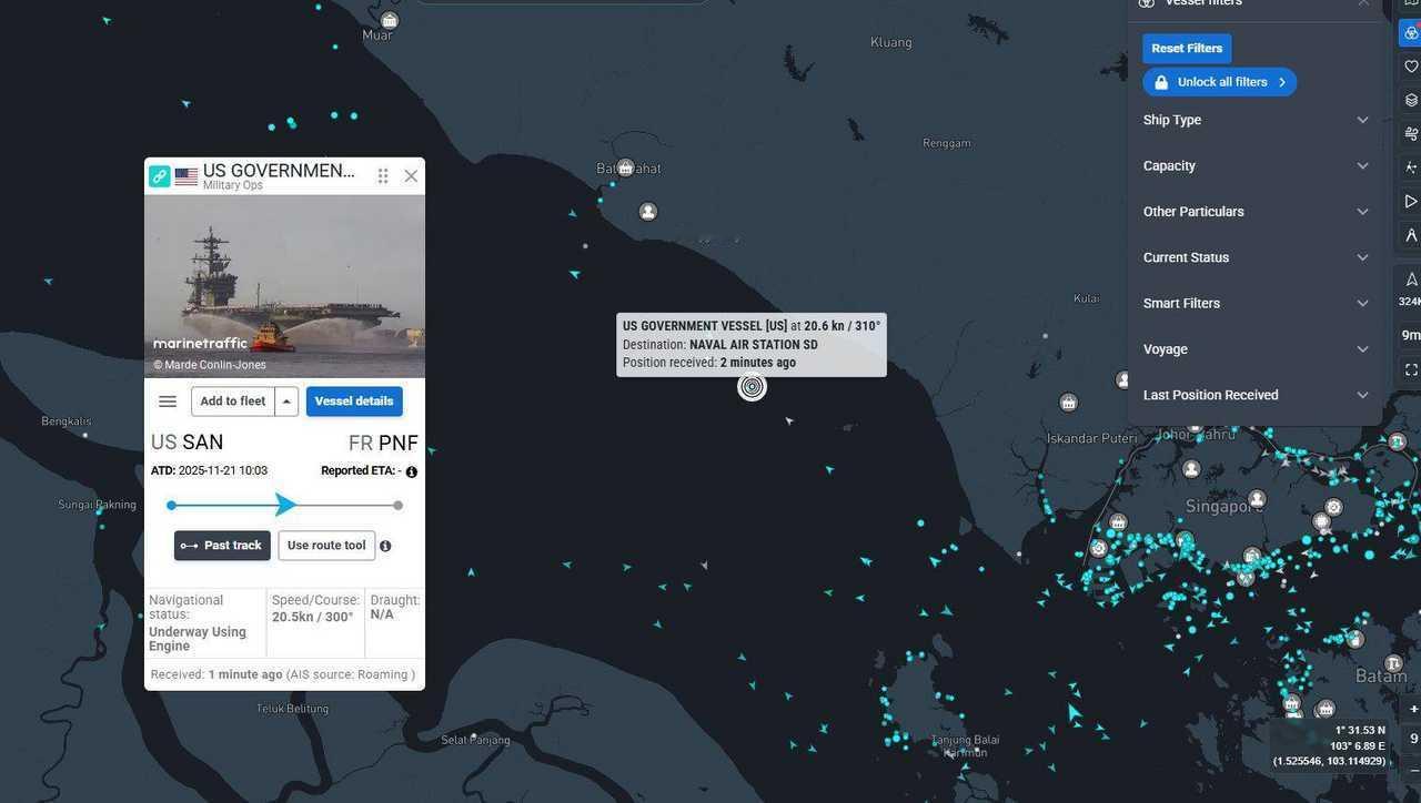 林肯号航母战斗群预计将在未来5至7天内抵达中央司令部行动区域,目前在穿越马六甲海峡。海外新鲜事热点现场国际局势