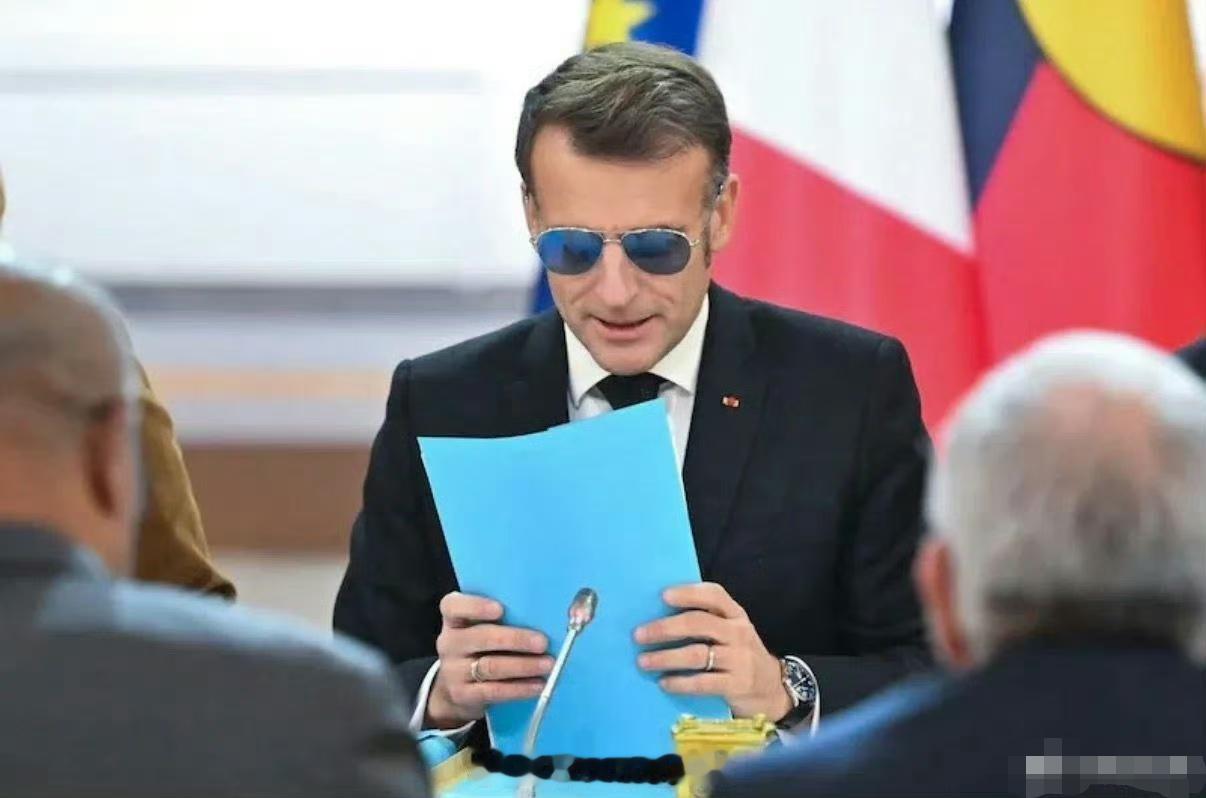 马克龙什么状况,戴墨镜参加爱丽舍宫会议!感觉像读盲文。 “很抱歉戴着墨镜,这是由