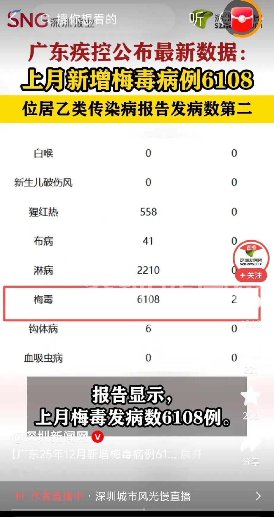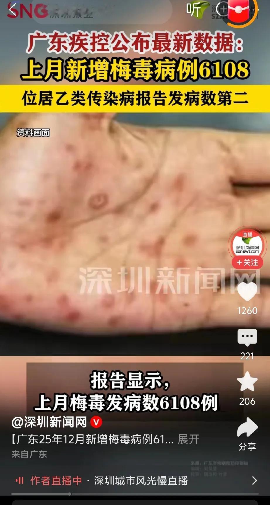 吓到我了,广东上个月新增梅毒6108例。 我没看错吧[泪奔]。 感觉这也有当年疫