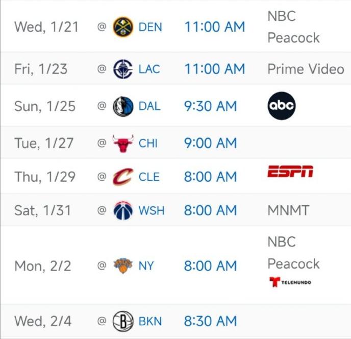 湖人将开启本赛季最长的8连客! 对手分别为:掘金、快船、独行侠、公牛、骑士、奇才、尼克斯、篮网,没有背靠背,全部为隔一天一赛。 这段时间,是“格莱美颁奖季”,湖人的主场会被占用。每一年的一月底到二月初,湖人都是奔赴客场作战,过去两年都是从1月25日开始,打一波6连客,今年直接从21日开始,延长成了8连客。 更巧合的是,这次8连客打完,湖人回到主场是2月6日,刚好是交易截止日。这意味着,湖人要是有交易动作,那会在客场之旅中完成,有的球员跟队打着打着,就得回洛杉矶准备搬家了。 因此这个8连客,最大的问题不是体能,而是人心浮动,尤其是陷入交易流言的文森特、八村塁、范德彪,每天带着随时要走人的心情打球,能稳定才怪。