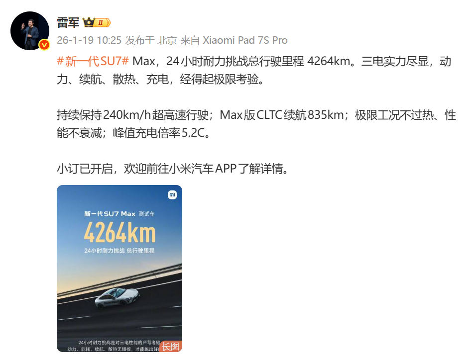 如果刘璐老师还在微博,那么今天必定是这一番景象。刘璐老师:“我很好奇,小米SU7耐力挑战连续跑24小时跑没电了充、充好了继续跑?这个测试具体要体现的是哪方面的性能?看照片好像是在测试场高环上,是一直极速?还是其他哪方面的极限”好在刘璐老师今天不在微博了,未来好一阵子都不会在微博,所以今天大家都可以好好聊聊新一代SU7的耐力测试。其实小米的营销,哪有那么多高大上的东西,无非就是把那些普通人不了解的汽车知识、赛车文化掏出来,掰开了揉碎了介绍清楚,并用数据量化,让网友一听就明白。如果你听不懂,甚至会认为小米是在过度营销,那么就得从自己身上找问题了。小米小米汽车雷军回应新一代SU7Max续航