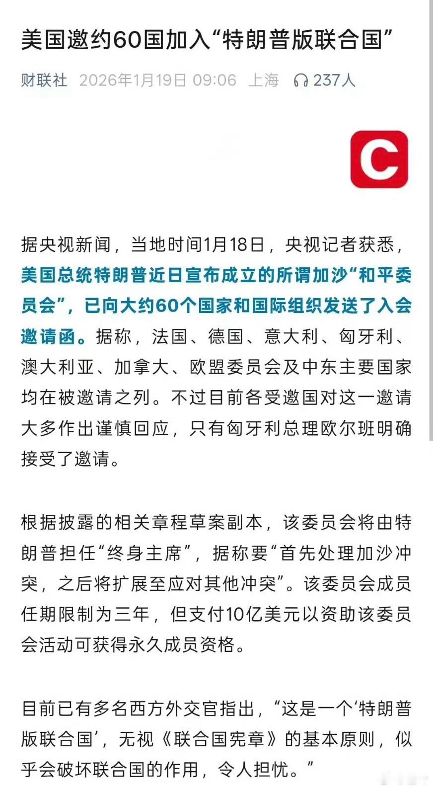 阿川“新联合国”永久席位开价10亿美元,首任主席特朗普,成员国由阿川指定,成员国任期不得超过三年,但主席可续任小日子,你们可以交会费了!特朗普想打造联合国替代机构