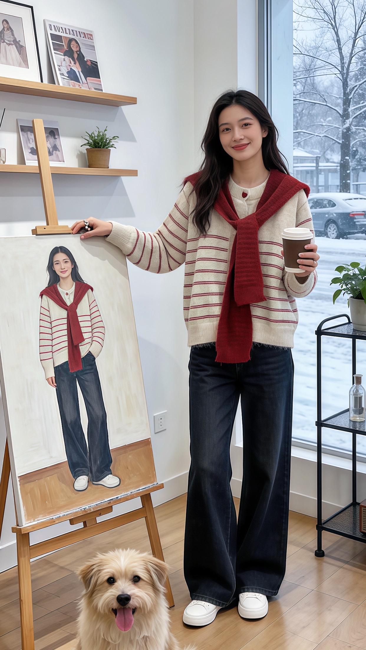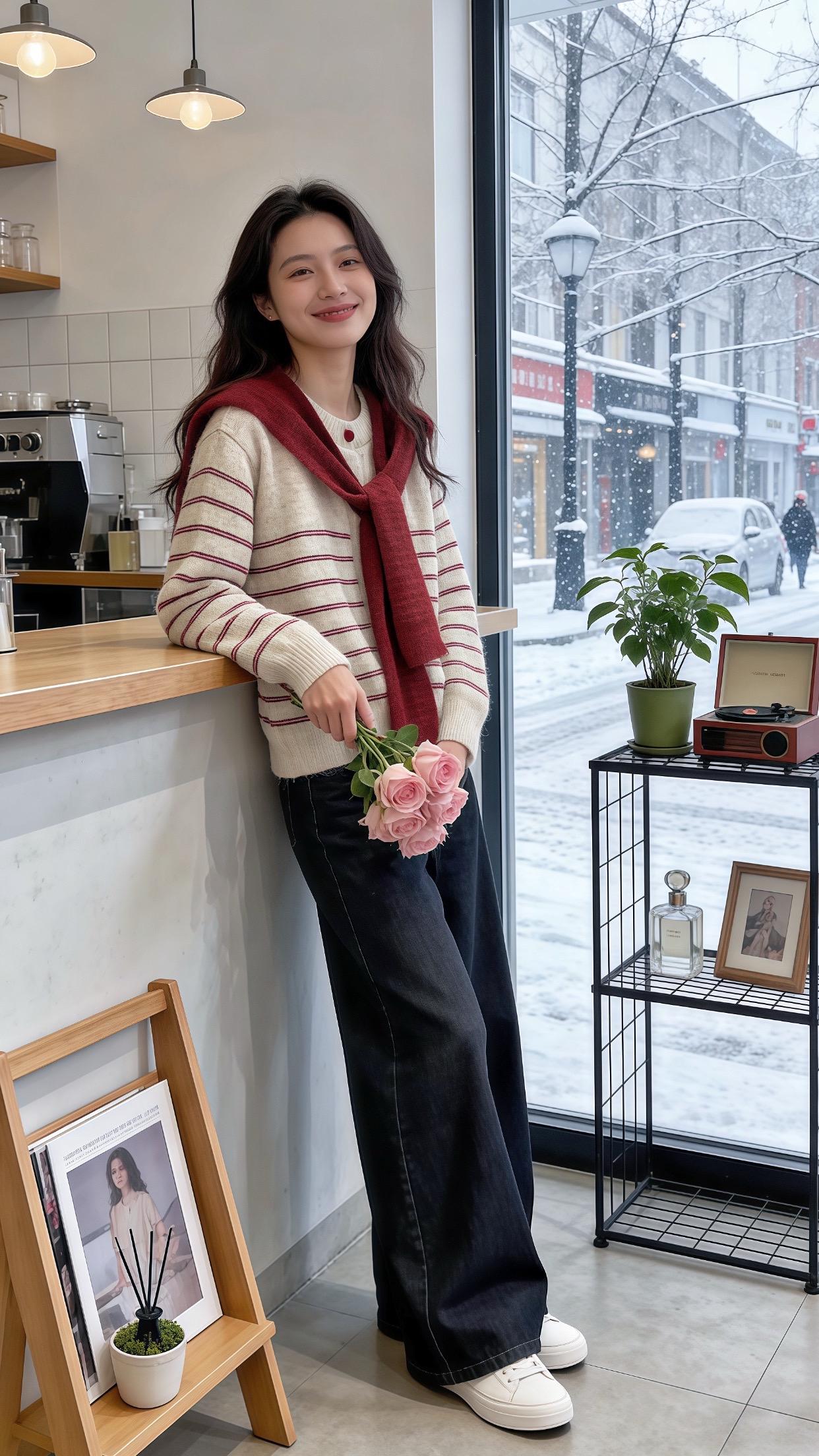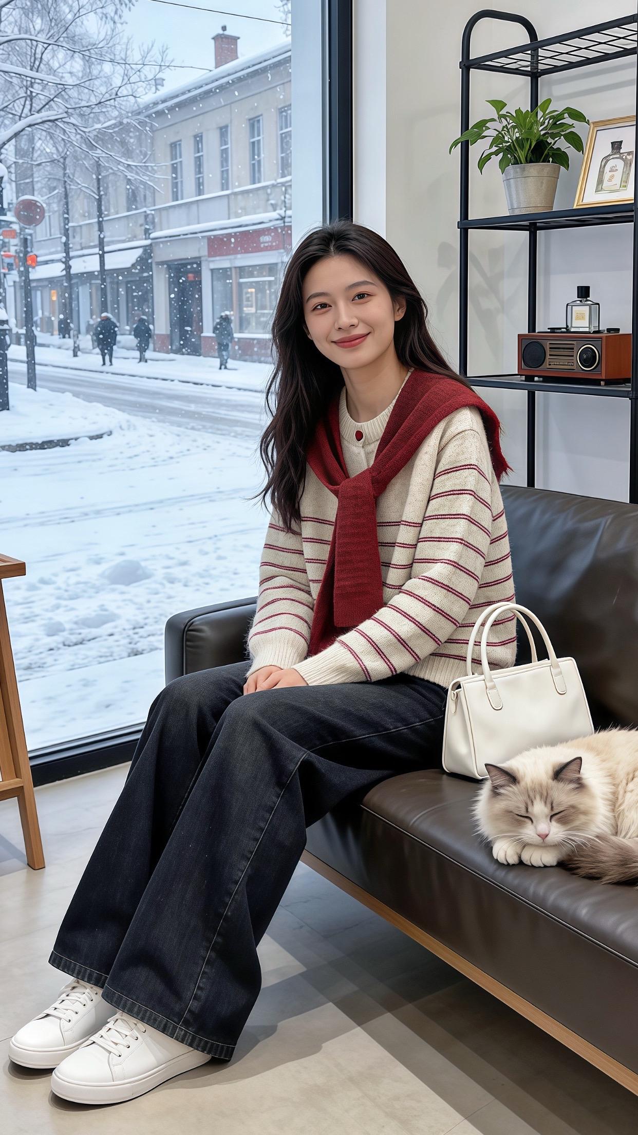 灰衫蓝边与雪日的轻暖闲意~