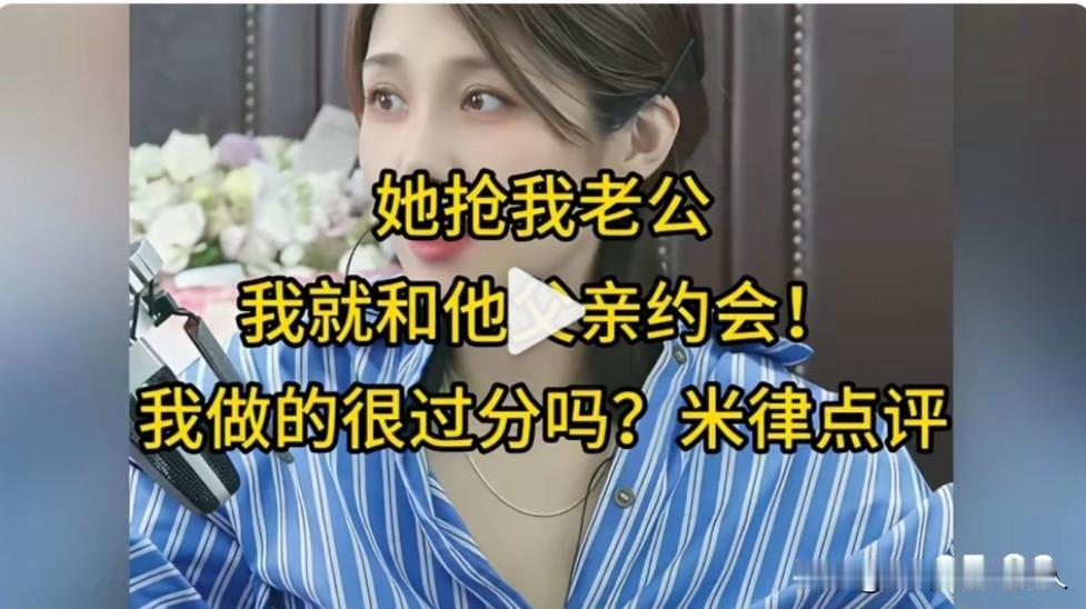 这个女角真厉害,别人抢她的老公,她很冷静,不吵不闹,不打滚撒泼,而是突发奇想,另辟捷径,要与小三的父亲约会,要当她的后妈。大家猜猜,这个女角的做法会不会倒逼小三自动退出。这种不让自己受伤,又能占便宜的想法是不是很聪明。 我觉得,她是这个世界上最智慧的女人。当别人抢你老公的时候,不妨也来这一招[捂脸]