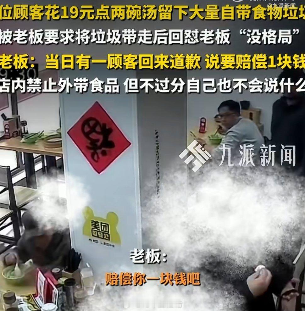 6人消费19元顾客道歉称赔1元6人消费19元留满桌垃圾,被要求带走却怼老板“没格局”,后续道歉仅愿赔1元,这波操作实在难让人认同。小餐馆的免费调料、座位、空调都是经营成本,1.5小时的占用早已超出19元的价值边界。道歉的核心是认错而非敷衍,1元赔偿更像对商家辛苦的轻慢。消费无高低,但尊重有底线,自带食物产生的垃圾本就该自行清理,将他人包容当理所当然,才是真的没格局。