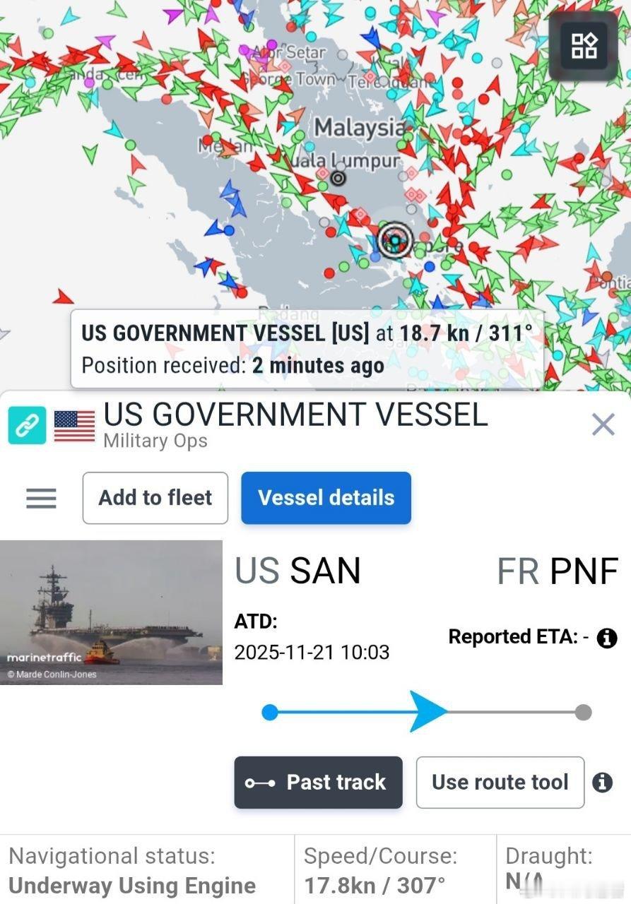 美国海军林肯号航母战斗群(CVN-72)正从南海经马六甲海峡向中东地区航行,预计将于2026年1月25日左右抵达阿拉伯海。伊朗美国