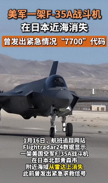 到处耀武扬威的美军,终究被“上天”收拾了! 1月16日上午,一则炸裂消息传来:美国号称“全球最先进”的F-35A隐形战机,在飞往日本青森附近敏感海域时,突然挂出“7700”紧急代码。 这代码一挂,懂行的都清楚不是小问题,意味着战机正遭遇致命故障,随时可能失控坠毁,果不其然,这架战机很快就从雷达屏幕上彻底消失,连一点踪迹都没留下。 事情发生后,俄罗斯卫星社第一时间披露了消息,航班追踪网站Flightradar24的监测数据也给出了佐证:这架F-35A从日本海北部起飞,飞到青森以南空域后转向东北方向,北京时间11时09分是它最后一次出现在监测画面里。 美日立马启动联合搜救,可忙活半天,到事发当晚也只捞到少量尾翼碎片和海面漂浮的油污,机上飞行员至今生死未卜。更棘手的是,事发海域藏着深深的海沟,要是战机真坠了进去,后续打捞几乎是不可能完成的任务,相当于直接给这起事故蒙上了一层无解的面纱。 按常理来说,美军遇到这种战机失联的大事,几小时内就该发布初步声明,可这次美日双方却异常沉默。 说起来这F-35系列,压根就不是什么省心的主儿,这次出事不过是旧疾复发。从2014年到2025年这十一年里,该系列战机已经闹出十多起重大事故,毛病从头到脚就没断过。 美国国防部作战测试与评估办公室2025年的报告早就点明,F-35的自主后勤系统容易出现数据链中断,这次战机发完求救信号就失联,刚好对上了这个老问题。 它搭载的普惠F135发动机也常年带病工作,在又热又潮的环境下长时间全力飞行,涡轮叶片就容易异常振动,巧的是这次失联的战机转场时刚好开了加力燃烧室,发动机出故障的概率极大。 其实,这已经不是F-35A第一次在青森附近栽跟头了。2019年,日本三泽基地的一架F-35A就曾在这片海域坠毁,飞行员当场死亡。2025年阿拉斯加也有一架F-35A坠毁,原因是液压油混进水分,低温下结冰堵塞了管路,再加上维护不到位,直接损失了近2亿美元。 除此之外,这系列战机还出过不少离谱事故:飞行员忘了拆进气罩,战机直接掉海里;飞控系统失灵失控;甚至有飞行员跳伞后,战机自己还飞了100公里才坠毁。 这些问题根源其实很简单,就是美国急于赚钱和称霸惹的祸。洛克希德·马丁公司为了抢占全球军火市场,明明知道F-35存在不少致命缺陷,还硬着头皮大规模生产、对外出售。 美军为了在亚太地区刷存在感,逼着三泽基地的F-35A高强度训练、频繁飞行,让战机长期超负荷运转。再加上海外基地的维护效率比美国本土低,有经验的地勤人员又稀缺,各种问题堆在一起,出事也就是早晚的事。 屋漏偏逢连夜雨,这架战机失联的时机还格外不巧,刚好赶上美伊局势剑拔弩张的时候。2026年1月15日,美国财政部刚对伊朗18名个人和实体实施制裁,针对伊朗的石油出口和洗钱网络。 1月16日白宫就放话,不排除对伊朗采取军事行动,还启动了中东地区人员和资产的转移预案。美军的亚伯拉罕·林肯号航母打击群正从南海紧急赶往中东,好几套导弹防御系统也跟着派了过去,本来想摆足威慑姿态。 结果F-35A失联直接打乱了美军的所有部署,不仅临时叫停了嘉手纳基地F-35A的转场飞行,原定于1月下旬举行的美日联合演习也被迫缩小规模。美军一直吹嘘的敏捷作战部署概念,经这么一折腾,可信度直接大打折扣。 一边是中东局势紧张需要派兵施压,一边是先进战机失联要忙着搜救调查,美军瞬间陷入两面为难的境地。 美军总爱拿着先进装备在全球耀武扬威,觉得自己能掌控一切,可这次F-35A的事故算是给他们泼了盆冷水。所谓的“全球最先进”,说到底还是个满身毛病的“绣花枕头”,再加上厂商逐利、军队过度部署、维护跟不上,出事是必然不是偶然。 这或许就是老天爷的警告,再怎么穷兵黩武、炫耀武力,终究会被现实狠狠打脸。