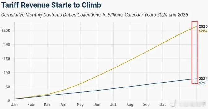 2025 年美国关税收入同比增长 234%,达到创纪录的 2640 亿美元,比 2024 年增加 1850 亿美元,仅12月份,关税收入就增长了210亿美元,增幅达300%2025年要不是特朗普隔三差五放一个关税利空,比特币估计早突破15万了