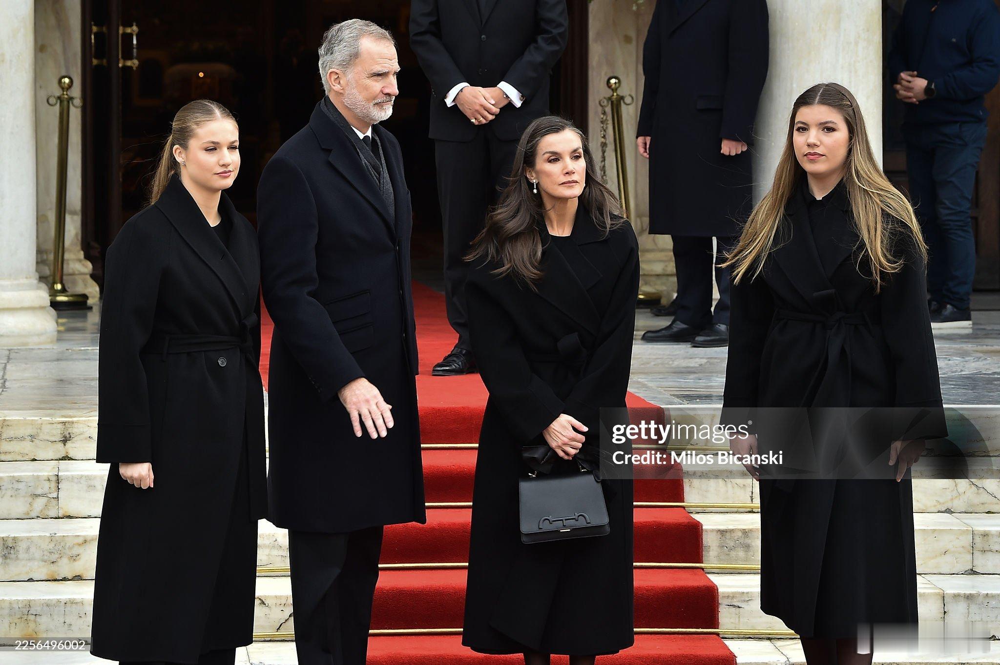 西班牙王室 🇪🇸希腊王室 1月19日,费利佩国王、莱蒂齐亚王后、阿斯图里亚斯公主莱昂诺尔、索菲亚公主出席艾琳公主在雅典大都会大教堂的葬礼。因为西班牙高铁🚄脱轨事件,🙏西班牙南部科尔多瓦省发生两列高速列车脱轨相撞事故,截止目前造成至少39人死亡、170人受伤,国王和王后参加完葬礼会马上返回西班牙。世界各国王室西班牙王后莱蒂齐亚西班牙公主莱昂诺尔西班牙索菲亚公主西班牙高铁事故死亡人数升至39人