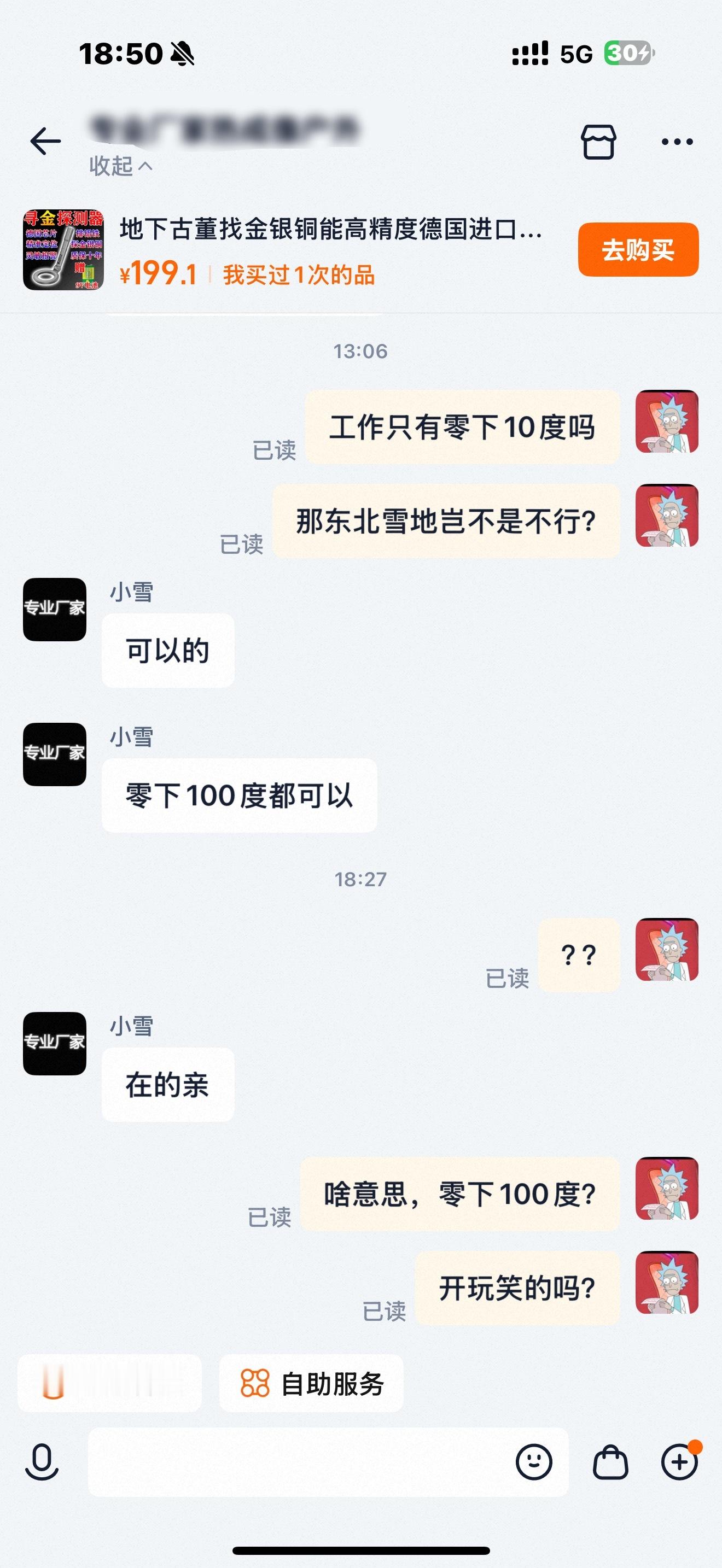 东西掉到雪地里了,想买个探测器,结果这客服…给我气笑了,火速退款退货……