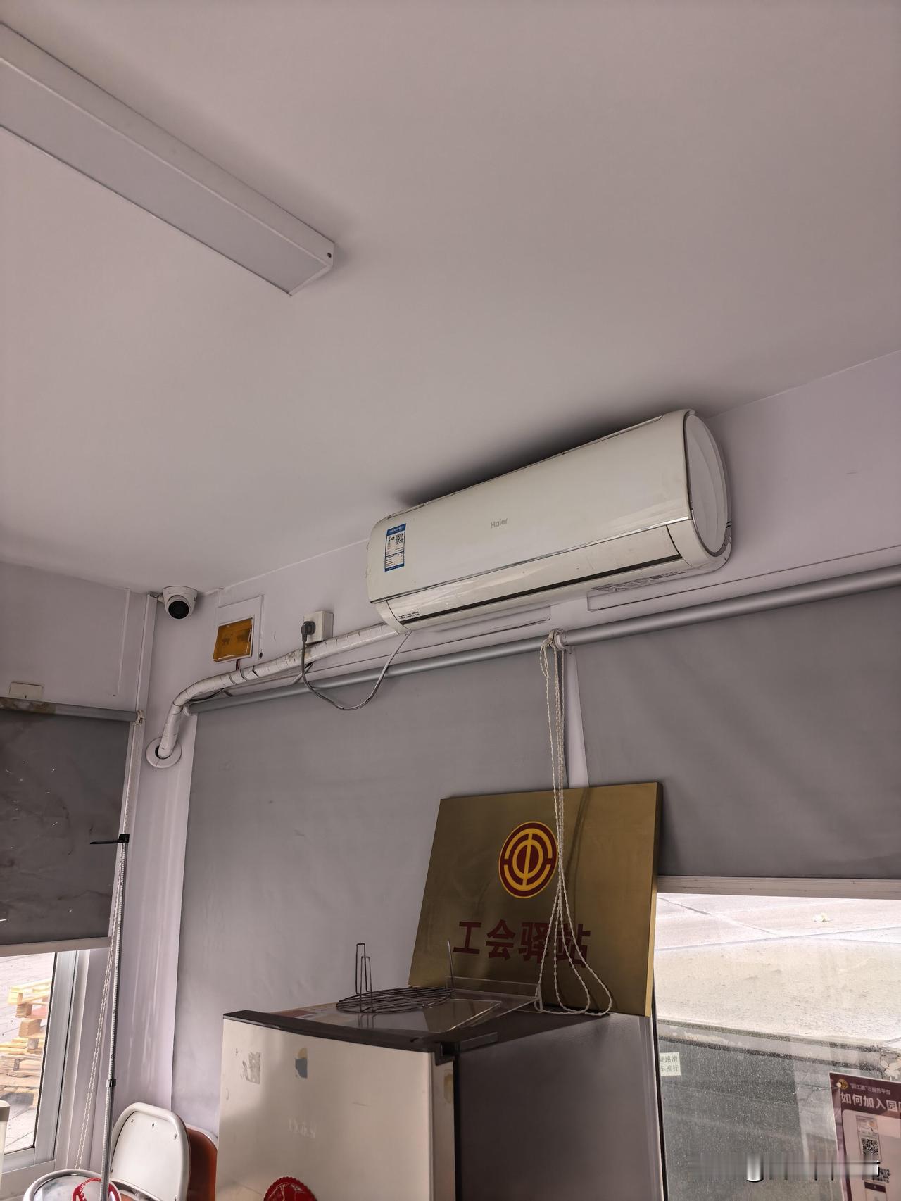 我只是一个路人,两个星期前,上班路过这个亭子被一个环卫阿婆拦住,跟我说天太冷了。公会驿站亭子里面的空调不开的,让我帮她问一下能不能把空调开开?遥控板是被“工作人员”拿走的,所以这个空调挂着就一直不给开。 这件事跟12345交涉了两个星期吧,上星期三次电话给我的答复是,社区已经跟商场明确好了,空调可以开。今天苏州降温,雨夹雪,早上上班的时候看了一下,里面没有人,空调还没有开,我下班的时候再去观察。 期间还有骑手小哥跟保安发生口角争执不多赘述。