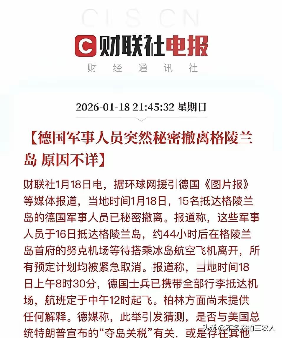 从当年横扫欧陆的“钢铁雄狮”,到现在44小时撤离的“匆匆过客”,德军已经不是当年的德军了! 13名士兵登岛格陵兰仅两日便仓促撤离,这场闪电式撤退堪比当年突袭波兰的闪电战。 这背后,是昔日虎狼之师的血性消亡,更是一个时代的彻底落幕。 没有了小胡子,德军就是一群待宰的羔羊。