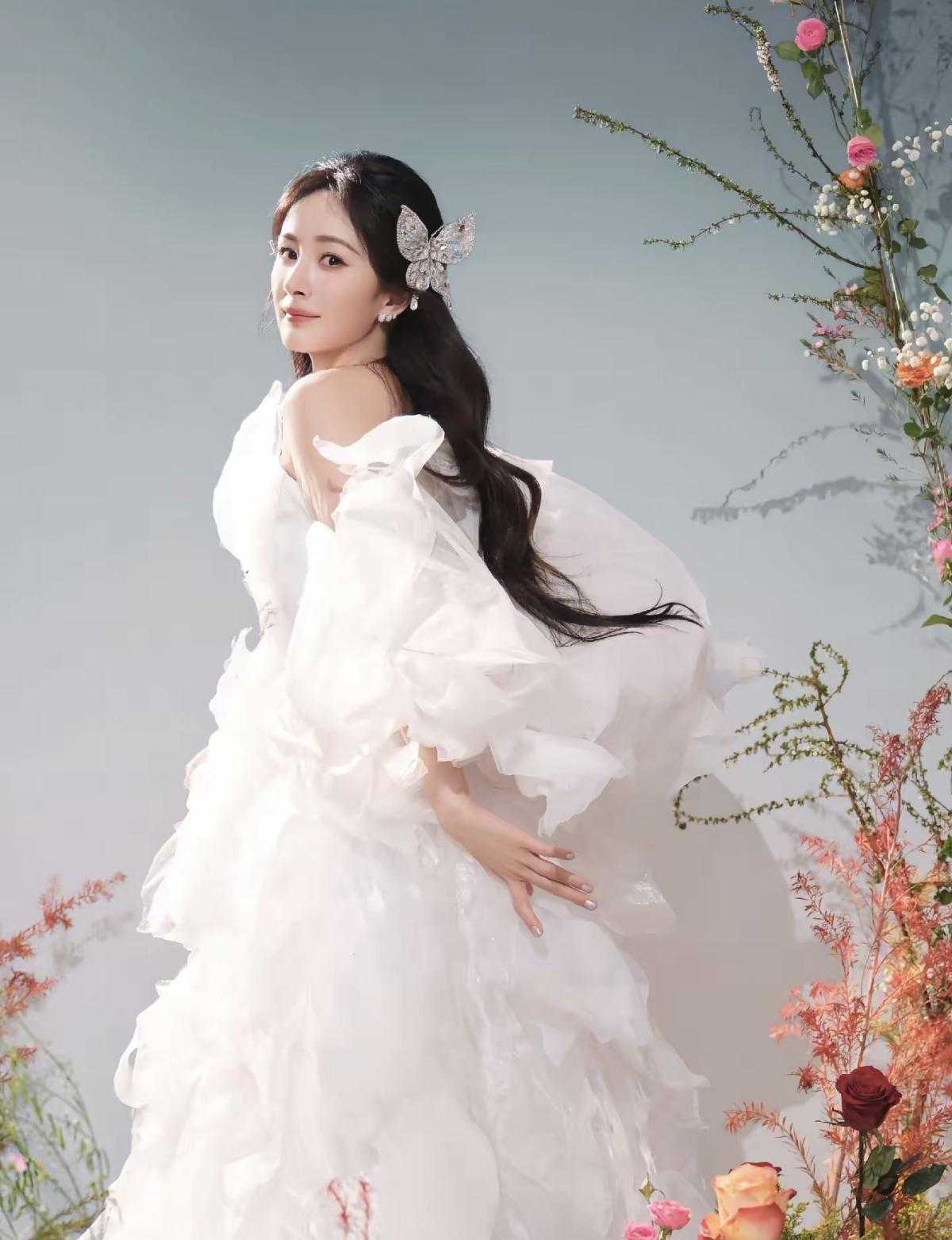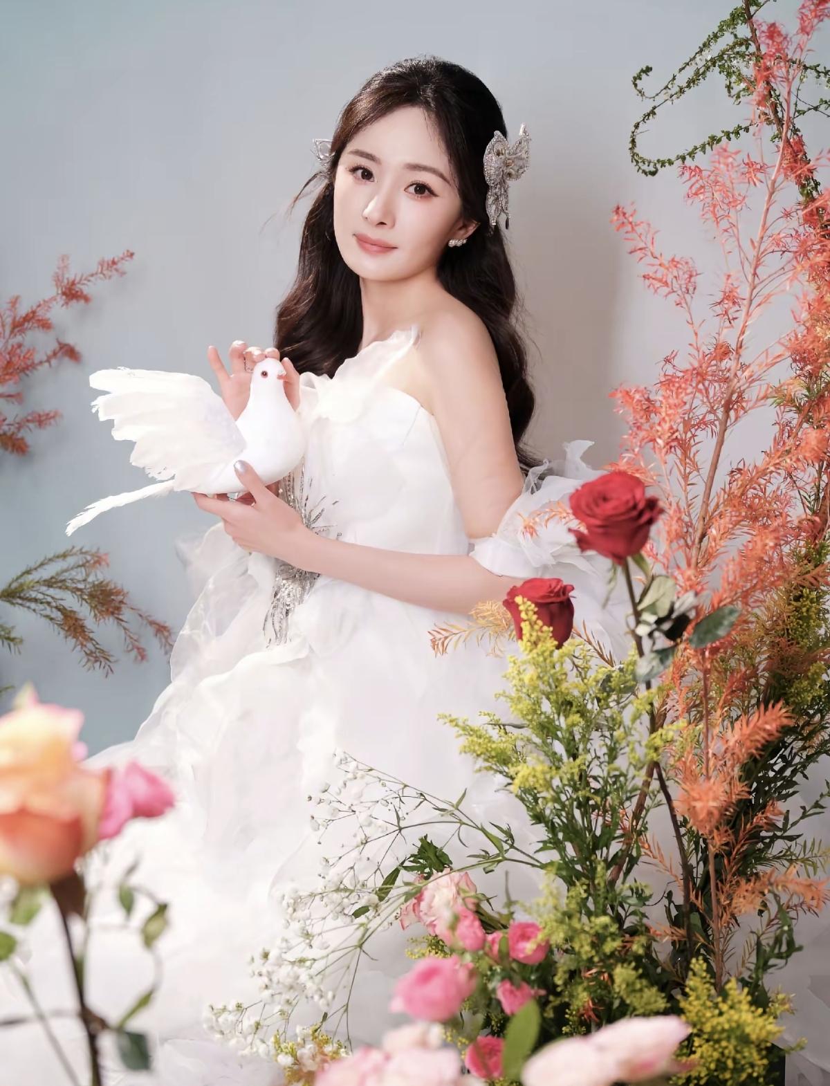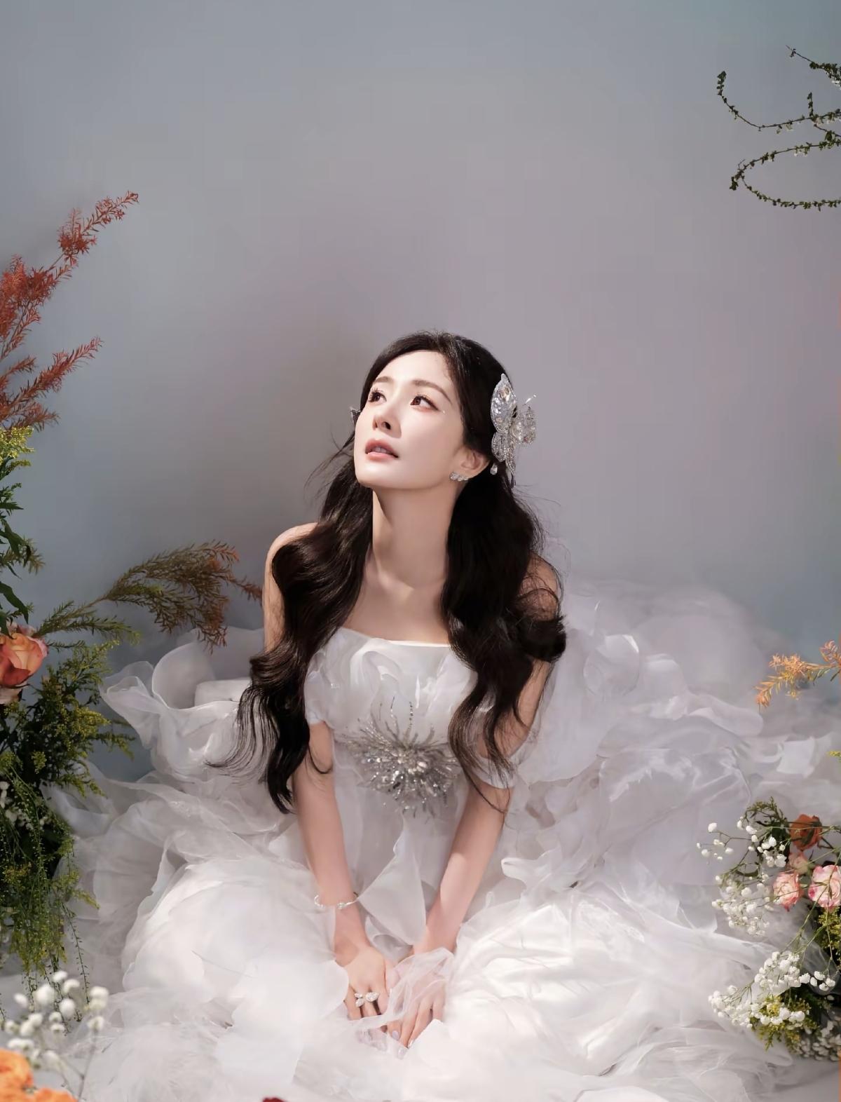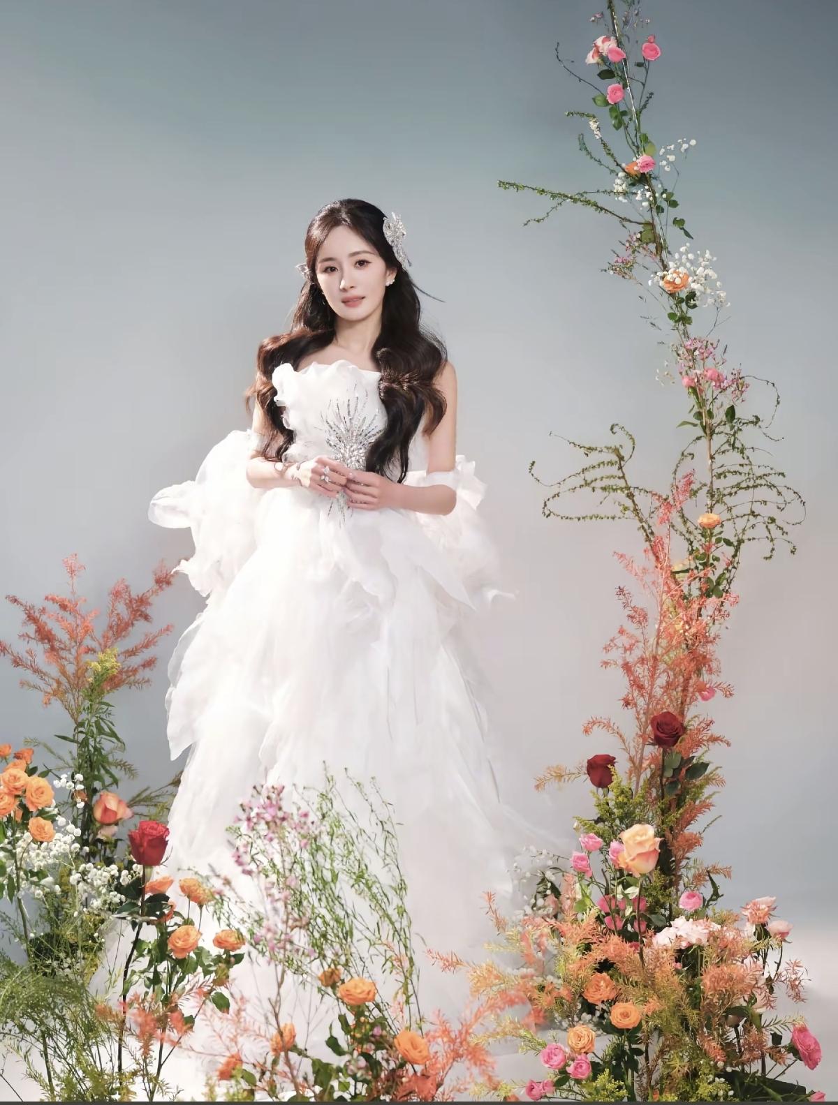 白纱、繁花、白鸽,杨幂把浪漫和温柔揉进了这组写真里,氛围感直接拉满[给力]抹胸白纱配卷发,杨幂的肩颈线条真的绝了,清冷又优雅,美到心巴上了[玫瑰]娱乐明星