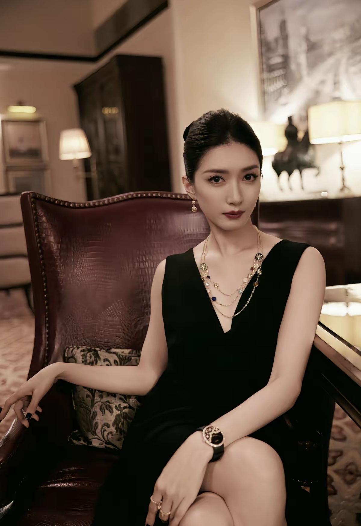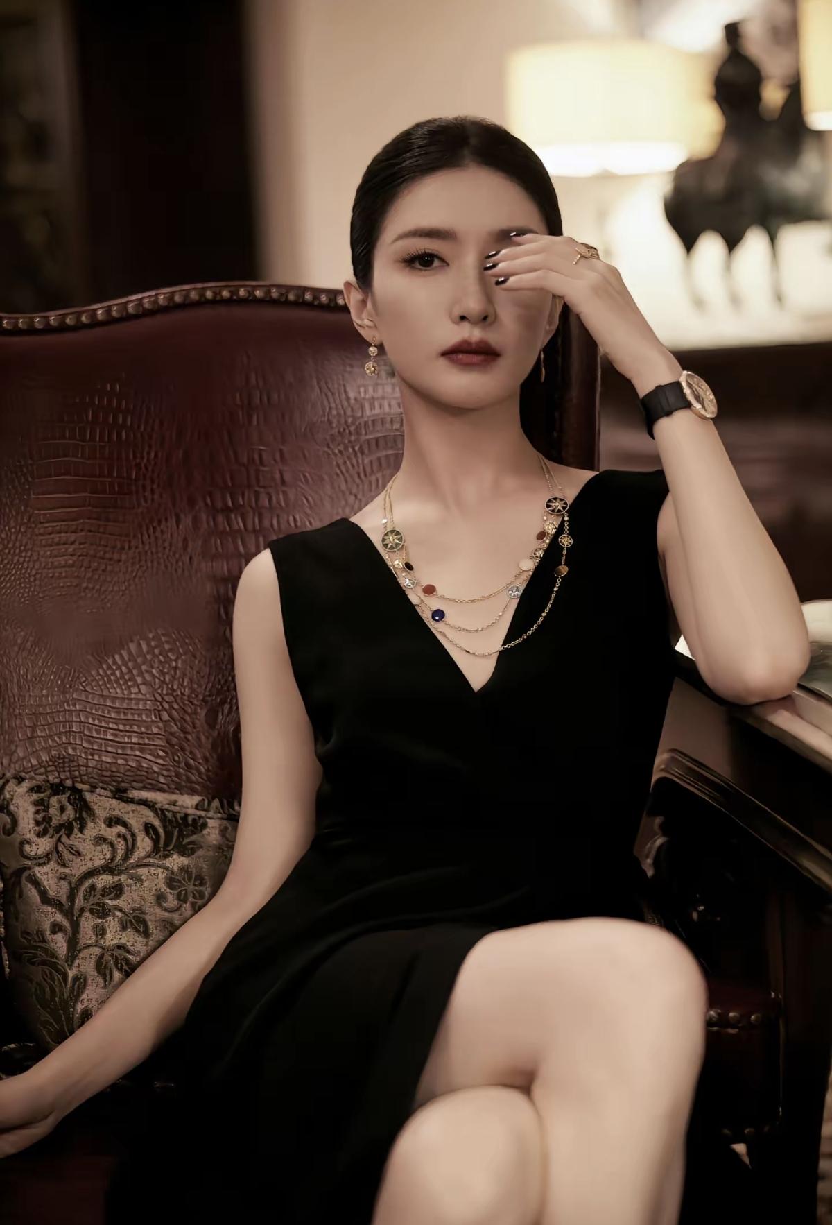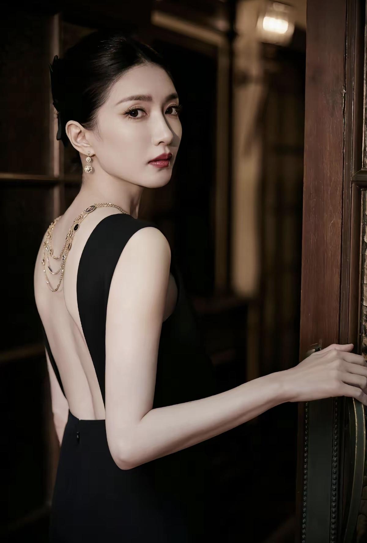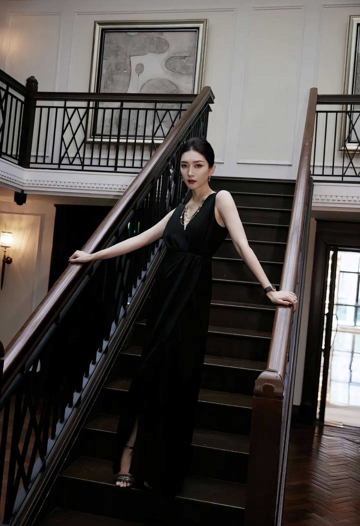 黑裙、红唇、彩色宝石项链,江疏影把复古氛围感直接焊在身上,慵懒又迷人[比心]无袖V领黑裙勾勒出完美曲线,江疏影的肩颈线条真的绝了,清冷又高级[赞]娱乐明星