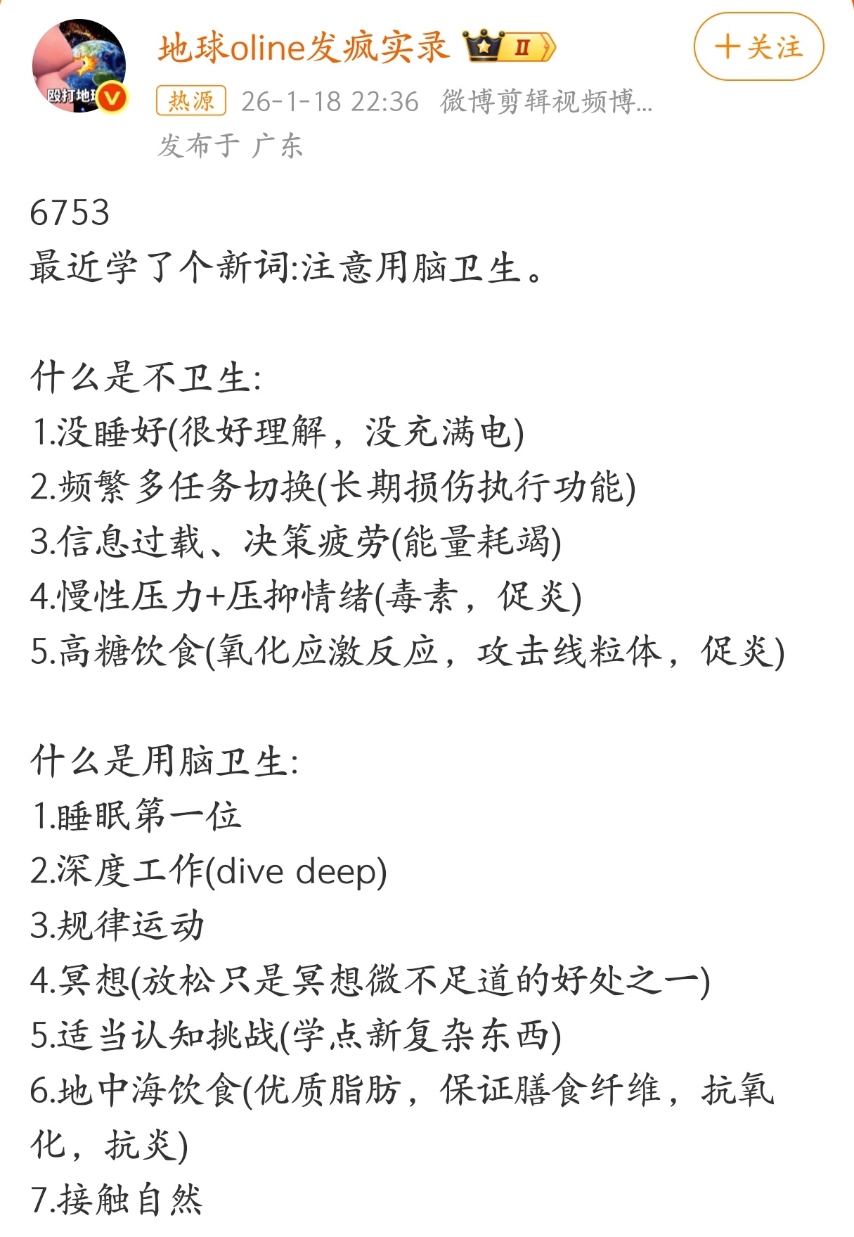注意用脑卫生,对健康太重要了。
