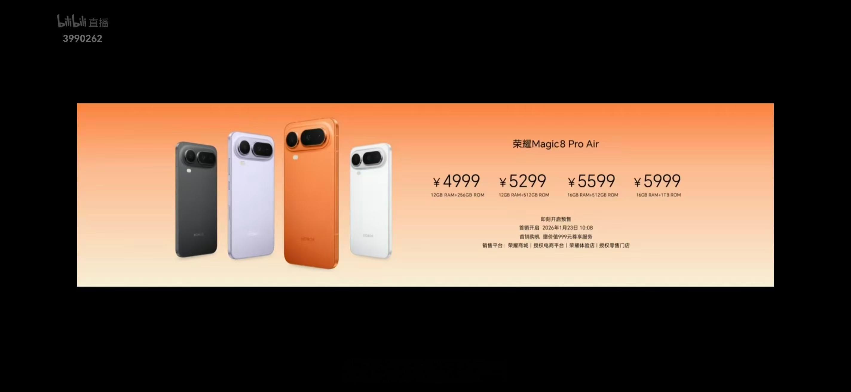 荣耀Magic8ProAIR,起步价4999,分别是12+256,4999