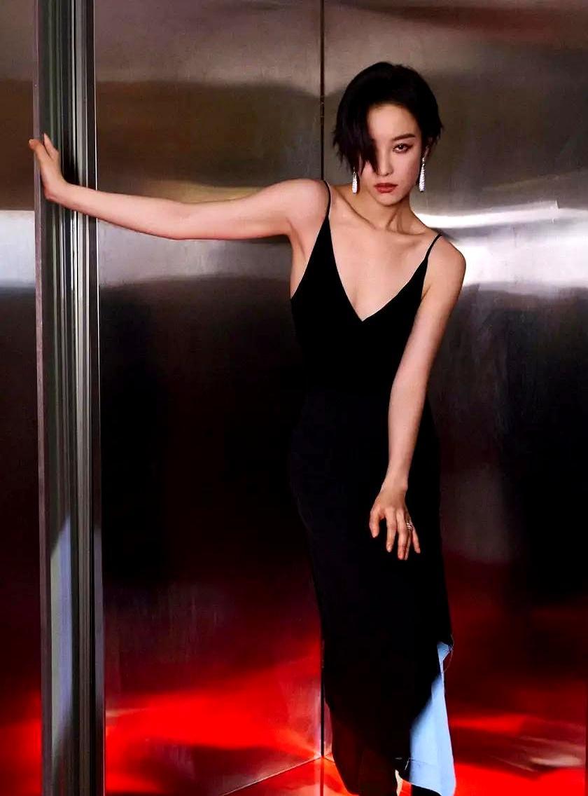 深V裙+过膝靴,腿直接拉长10厘米 倪妮把这套穿成红毯杀器。吊带裙开到腰,靴