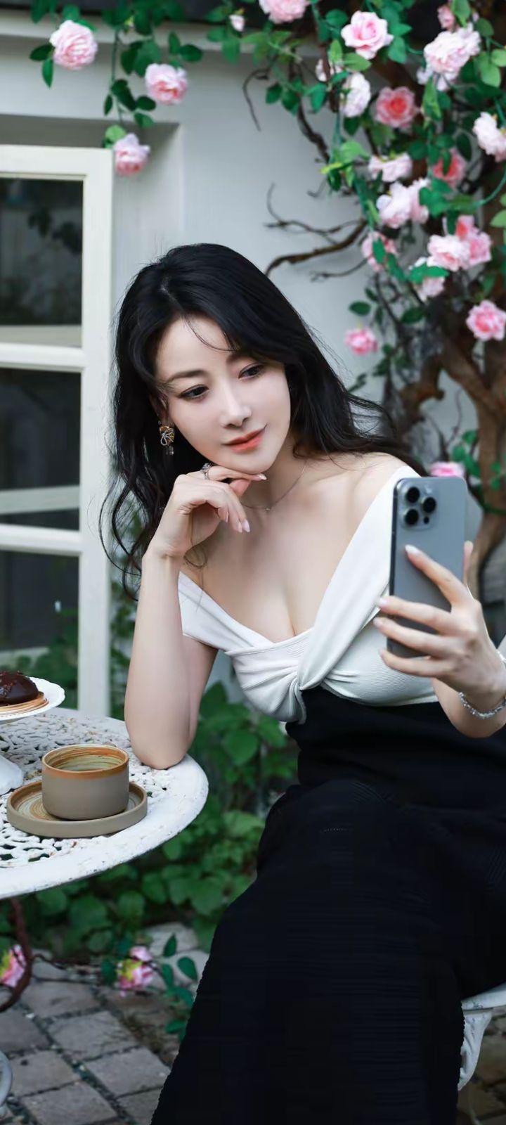 在花丛中自拍,享受美好时光🌸📸