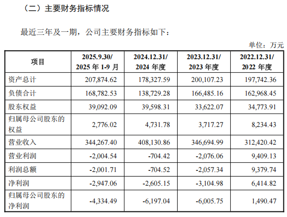 2023年、2024年及2025年前三季度,盈方微的归母净利润分别为-6005.75万元、-6197.04万元和-4334.49万元。