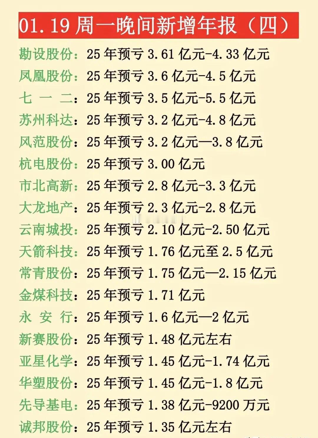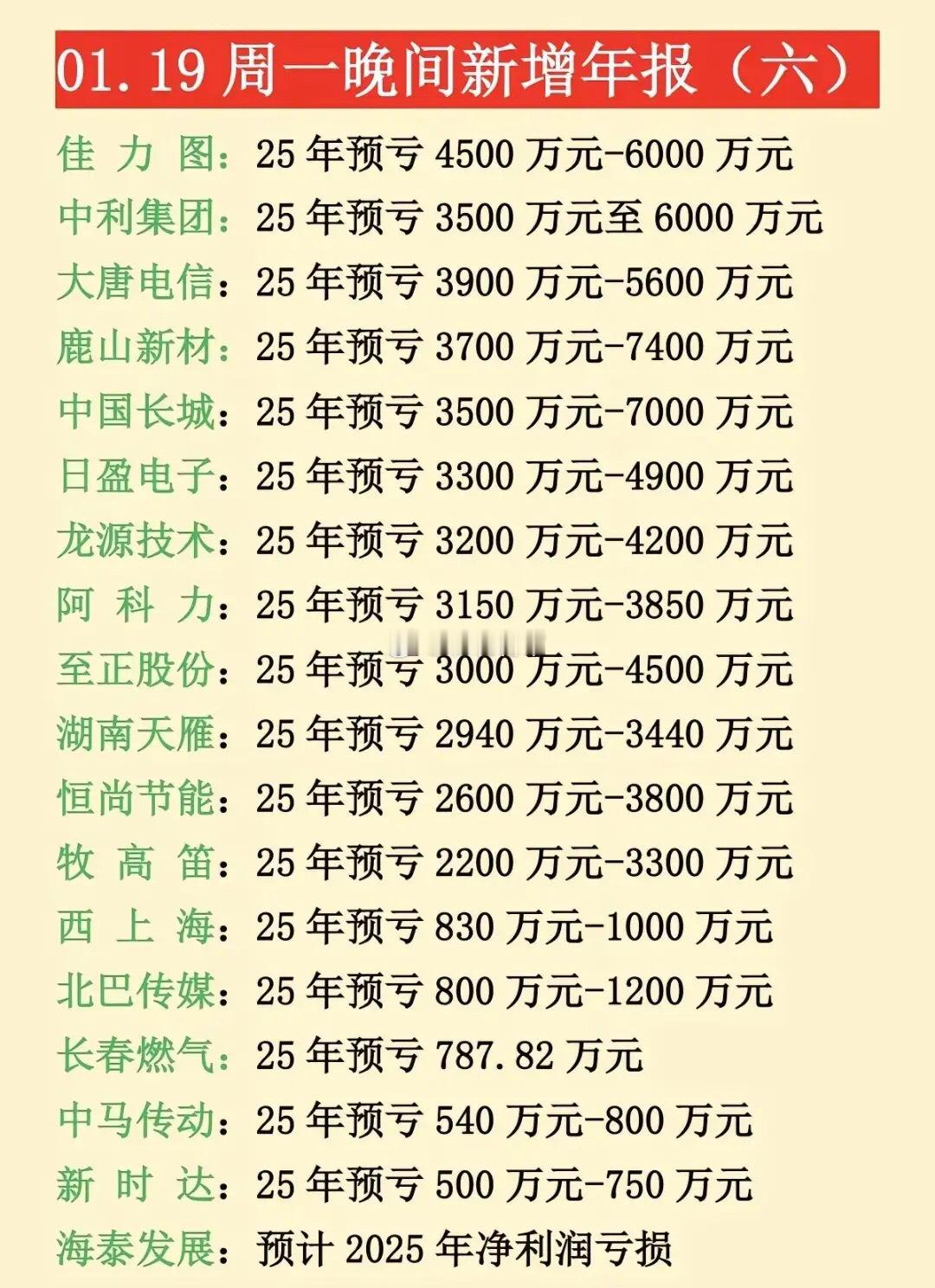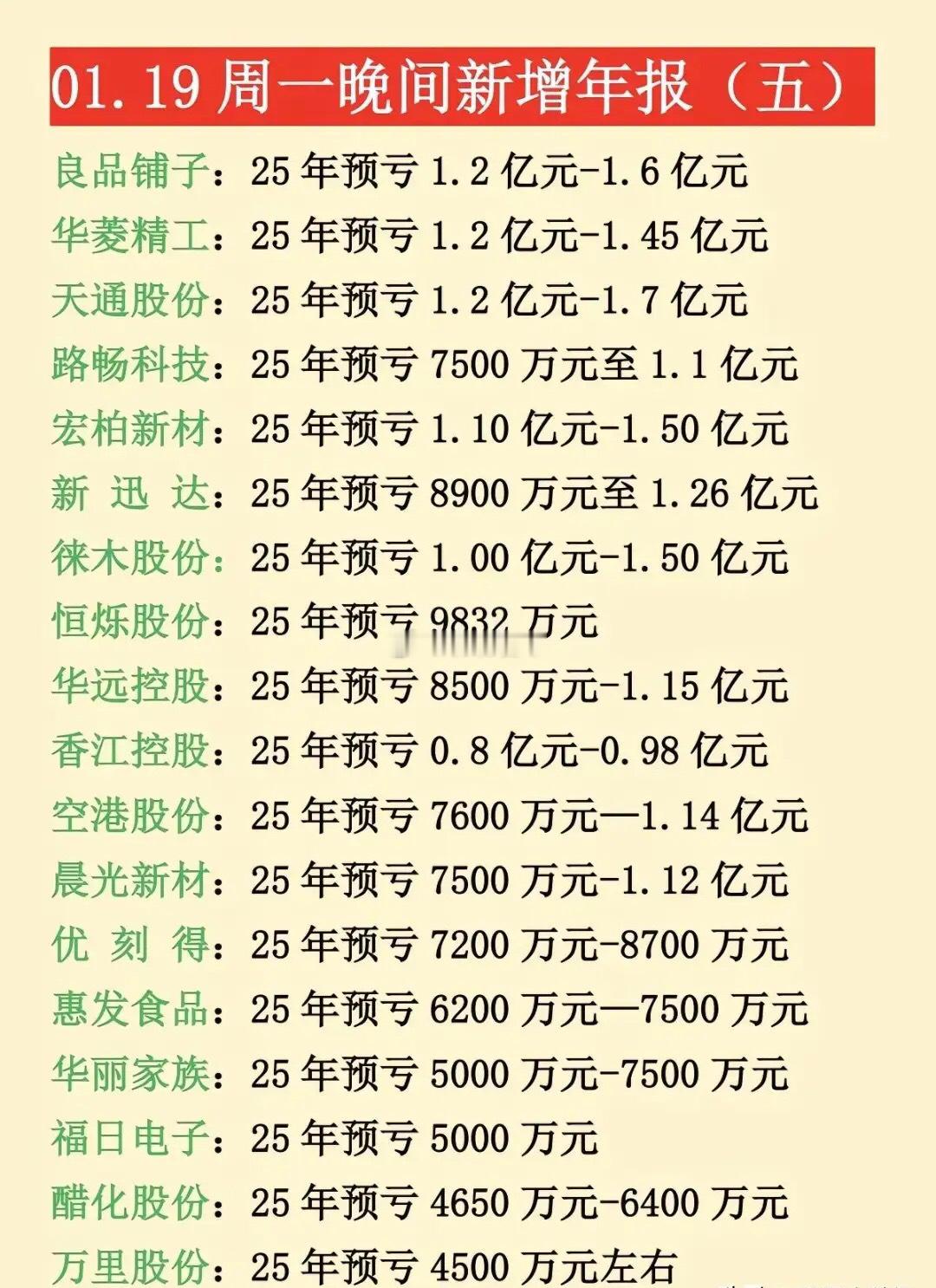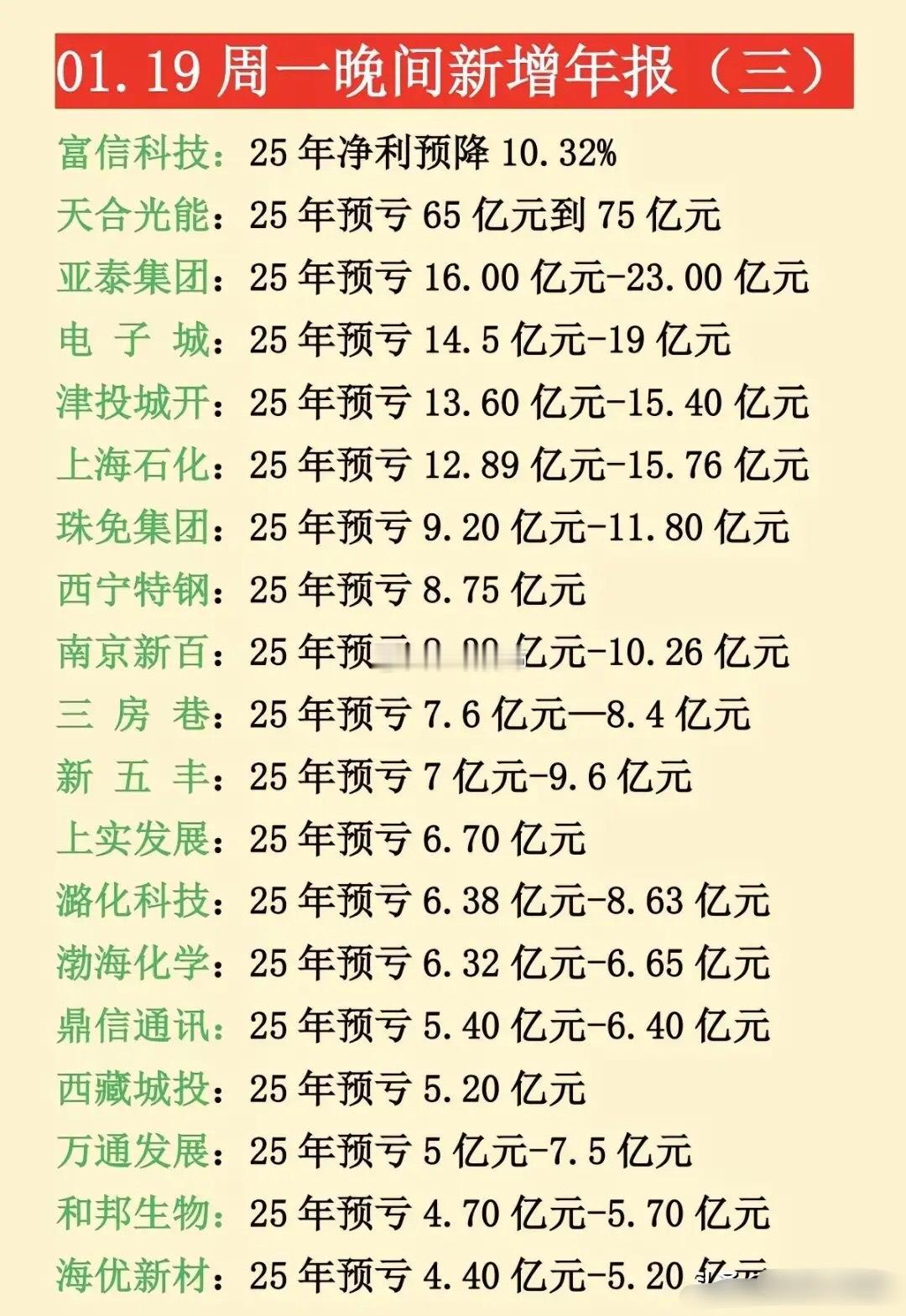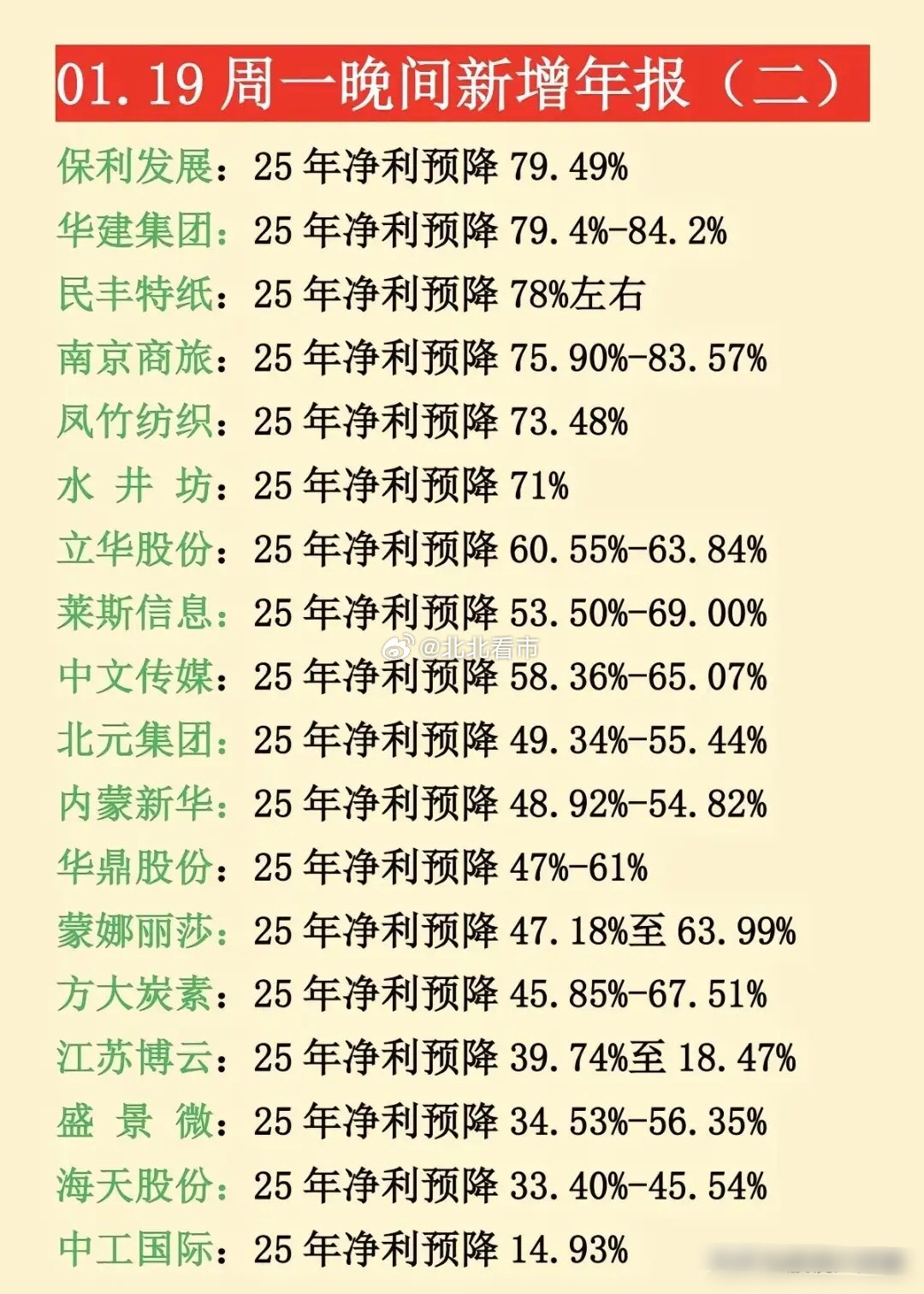 天雷滚滚,最新业绩风险来袭!1月19日晚间新增年报预告出炉,大批量的预减预亏来袭