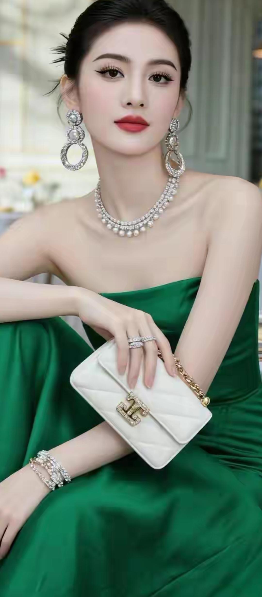 优雅绿裙搭配奢华珠宝,尽显高贵气质!