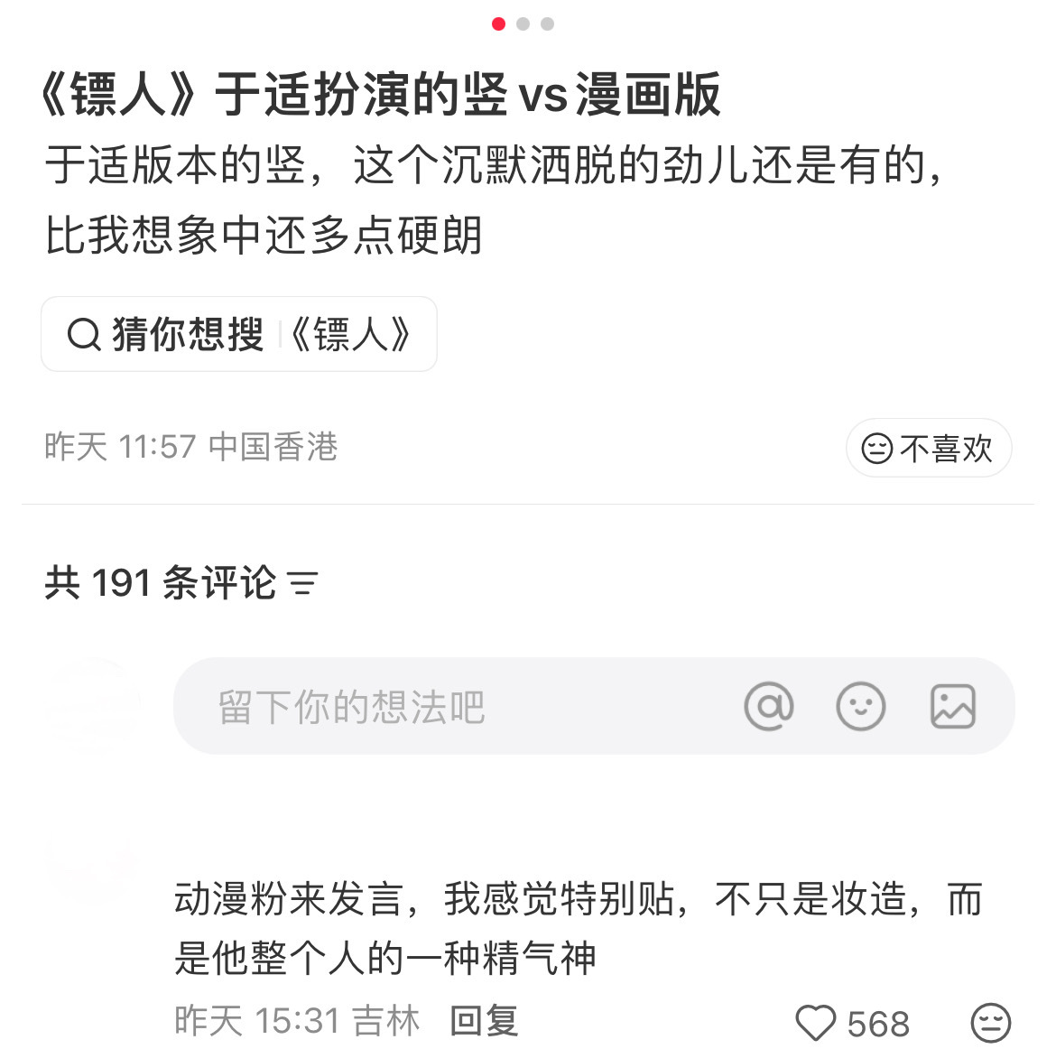 于适在《镖人》预告里的造型跟原著真的是很还原了,原著党纷纷给出好评