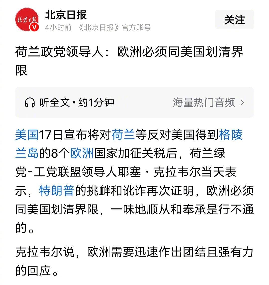 荷兰绿党-工党联盟领导人耶塞·克拉韦尔1月18日公开指责特朗普的“挑衅和讹诈”,强调欧洲不能再对美国“一味顺从和奉承”,必须划清界限并作出“团结且强有力的回应”。这一次我们一起想想办法,怎么给欧洲人讲讲春秋战国的故事,鼓励欧洲人站起来,反对“列强”。然后我们可以看一下“列强”PK“列强”,到底哪家强。