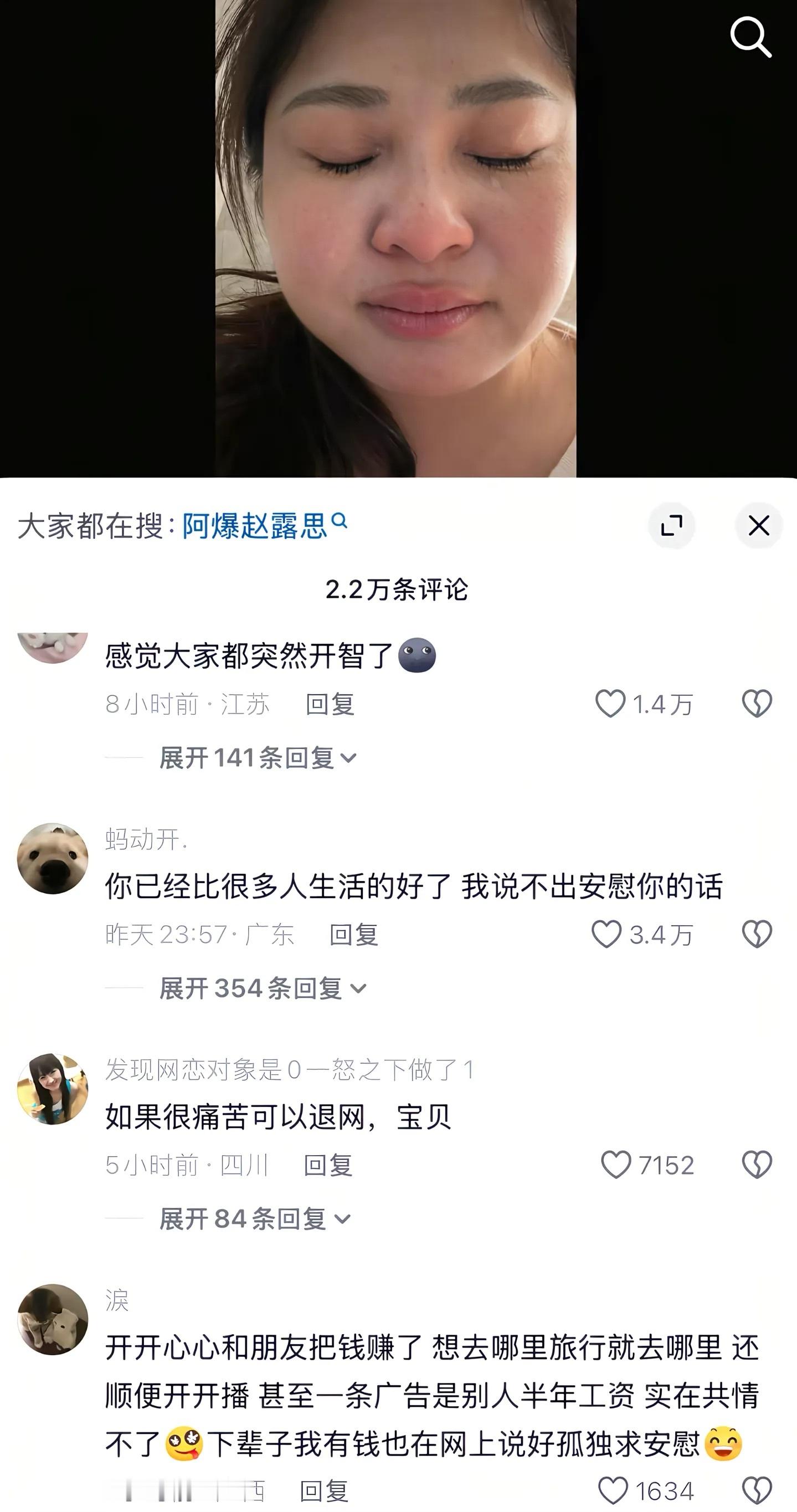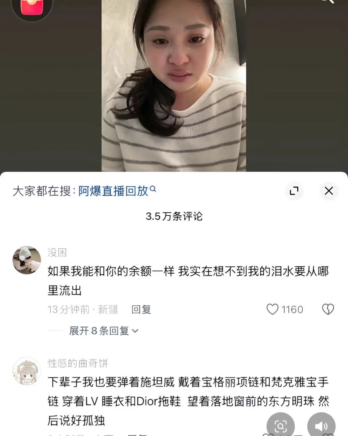 阿爆发哭了自拍引争议阿爆发哭了自拍引争议,评论区的网友共情不了一点都在批评她