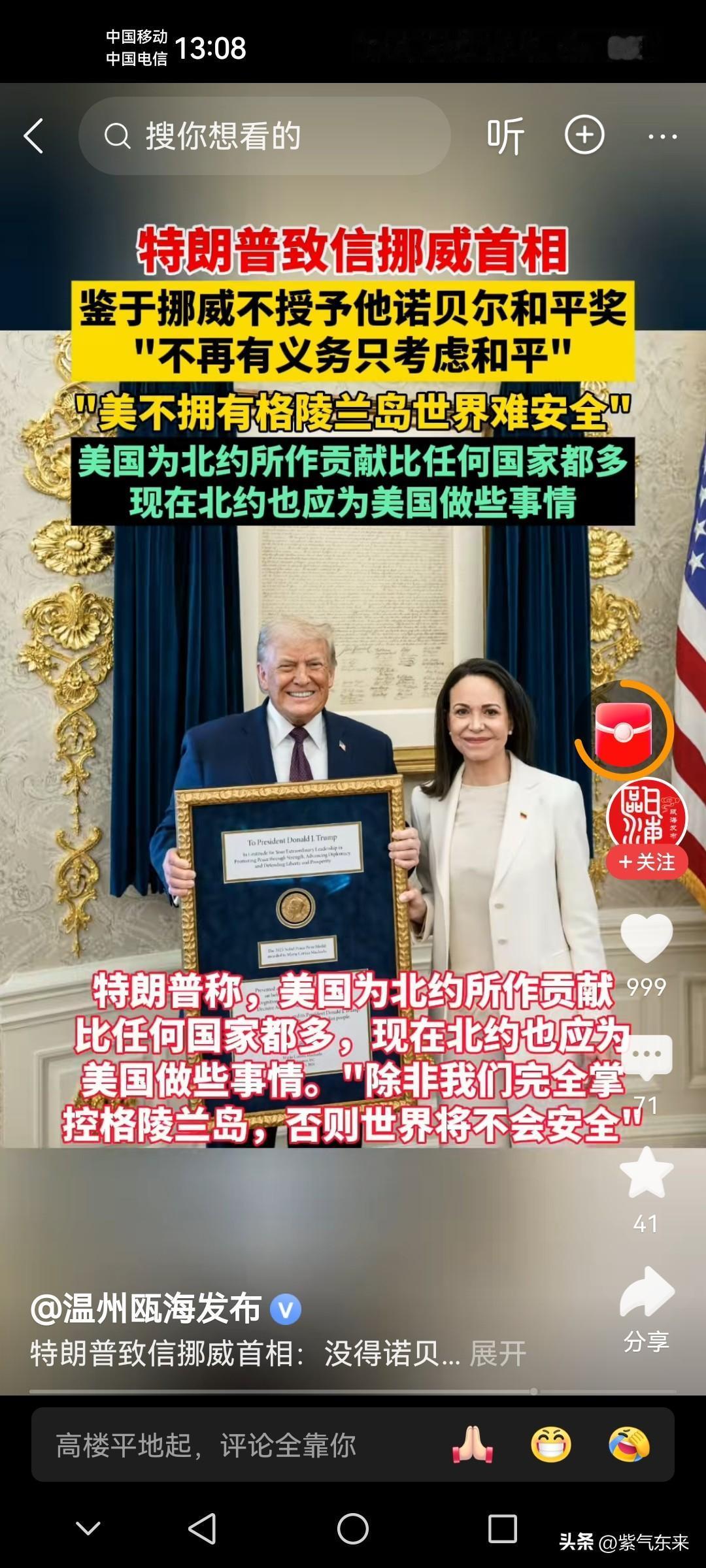 美国总统特朗普的“吃相”太难看了,得不到就威胁,妥妥的美式风格! 特朗普致信挪威首相,鉴于挪威不授予自己诺贝尔和平奖,美国将“不再有义务只考虑和平” 直接威胁挪威的诺贝尔和平组织,特朗普的这种行为,简直是滑天下之大稽! 特朗普甚至公开表态:如果美国不能拥有格陵兰岛,那世界将很难和平。美国为北约所作出的贡献比任何国家都多,现在北约也应该为美国做些事! 特朗普把美国优先政策和美国霸权主义发挥的淋漓尽致! 让全世界都看清了特朗普的丑恶嘴脸,但又无可奈何!欧洲对特朗普 川普特朗普 特朗普经济霸权 特朗普经济霸权 欧盟反击特朗普 特朗普碰壁 特朗普怒怼