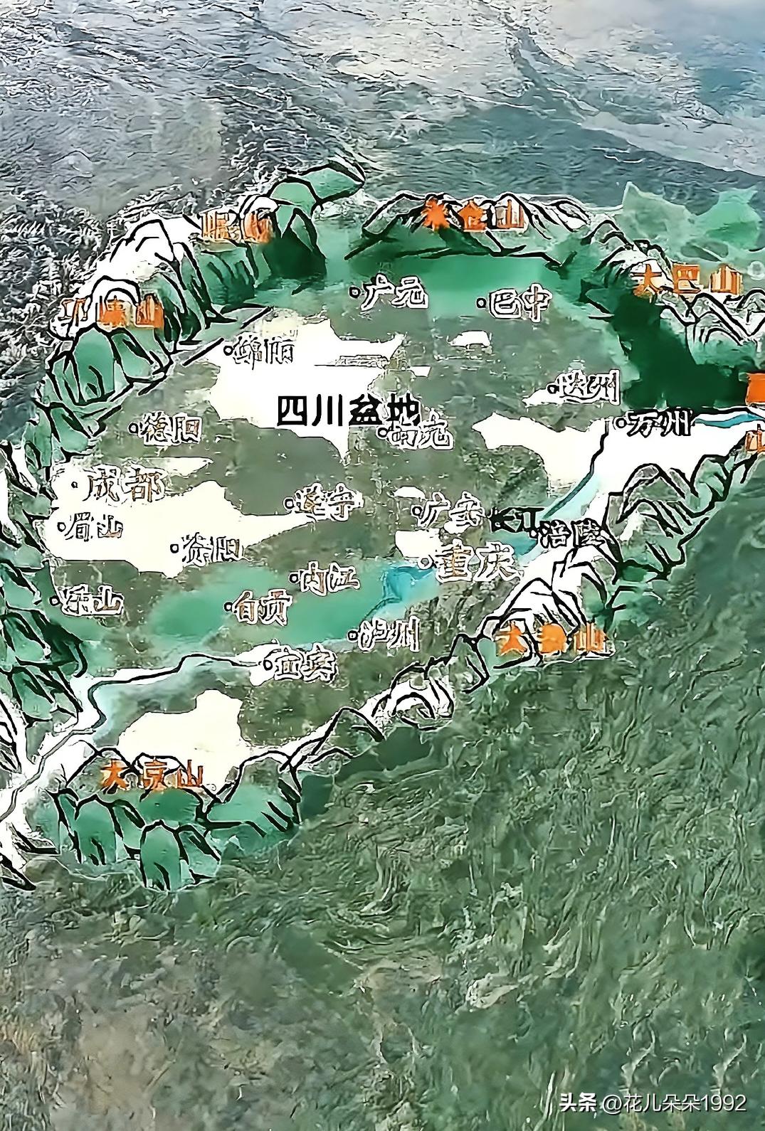 “天府之国”总以为是夸它物产丰富,土地肥沃、四季产粮、风调雨顺。 现在才懂,真正的“天府”,是这份被山川地理偏爱到了骨子里的【安全感】。 当年外面打得天翻地覆、兵荒马乱的时候,这里面的人,可以关起门来,喝茶、摆龙门阵、种地、生娃,。整个四川,就是一个被大山死死圈起来的“天选之地”。 大巴山、龙门山、大凉山……像几堵密不透风的墙,把整整26万平方公里的富饶,牢牢护在了手心里。 这里气候潮湿不是没有有原因的,夏天水汽和热气全在里面打转转,风都找不到门儿进来。 那份刻在四川人骨子里的安逸和“巴适”,或许地理格局给的底气。 保家卫国当年川军出川更是威名中外……打出了国人的底气
