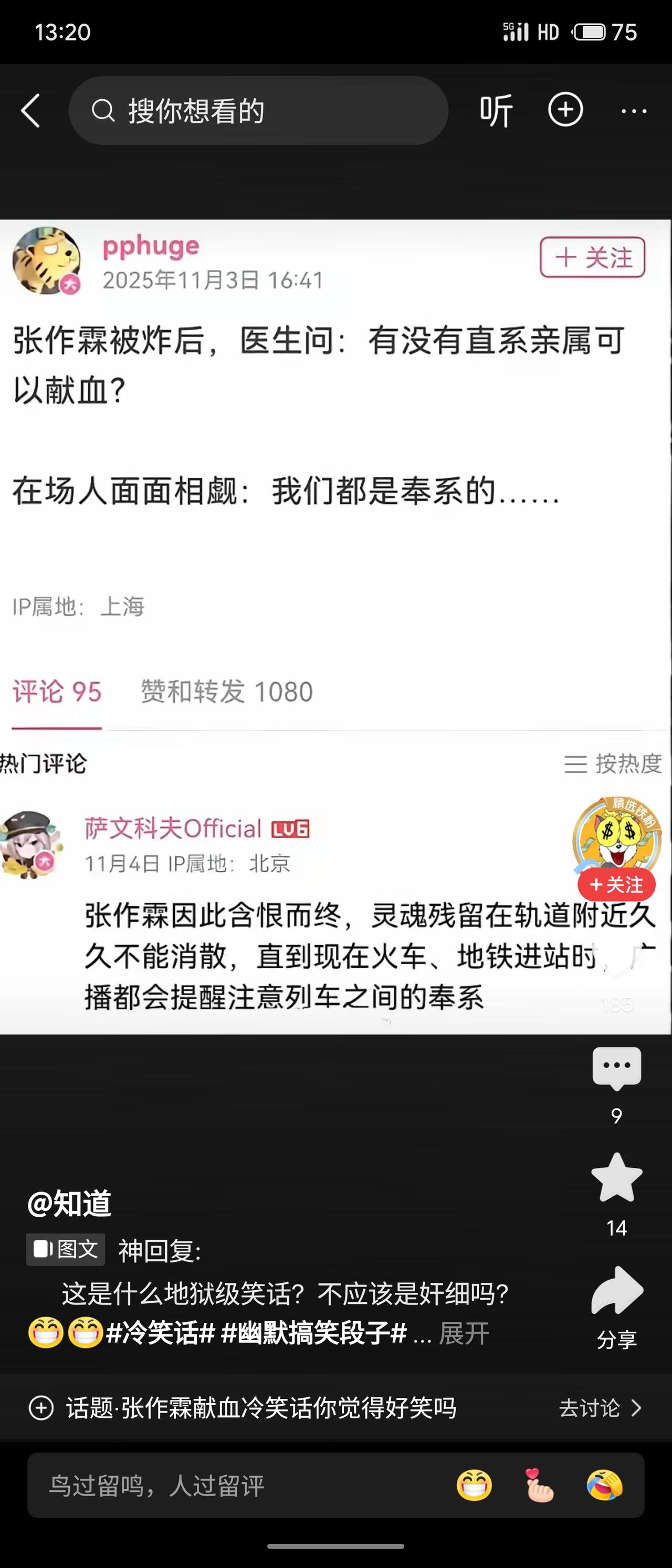 这是一则网络冷笑话,借张作霖遇刺后需“直系”亲属献血的历史场景,利用其军阀派系“奉系”与“直系”的谐音制造双关笑点。