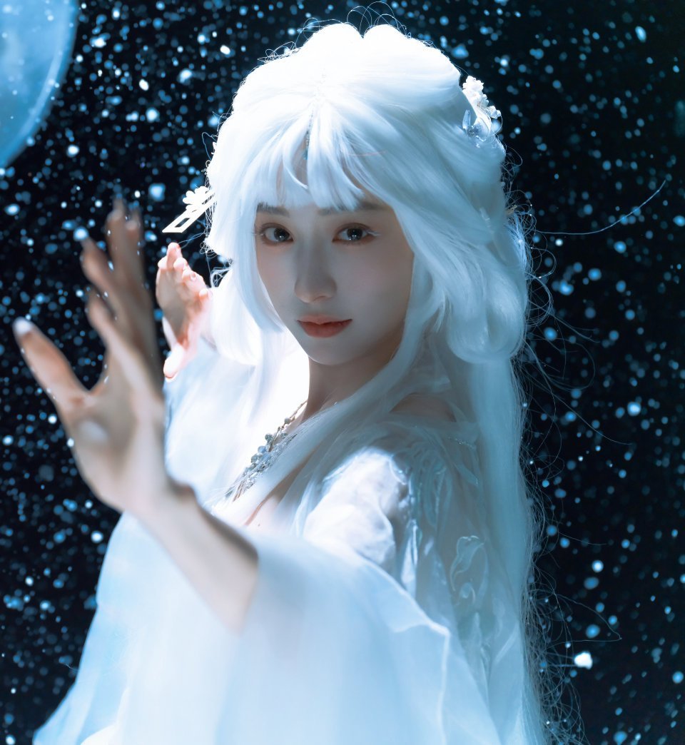 胡连馨白发写真 被姐姐的美貌惊呆了 雪中美人