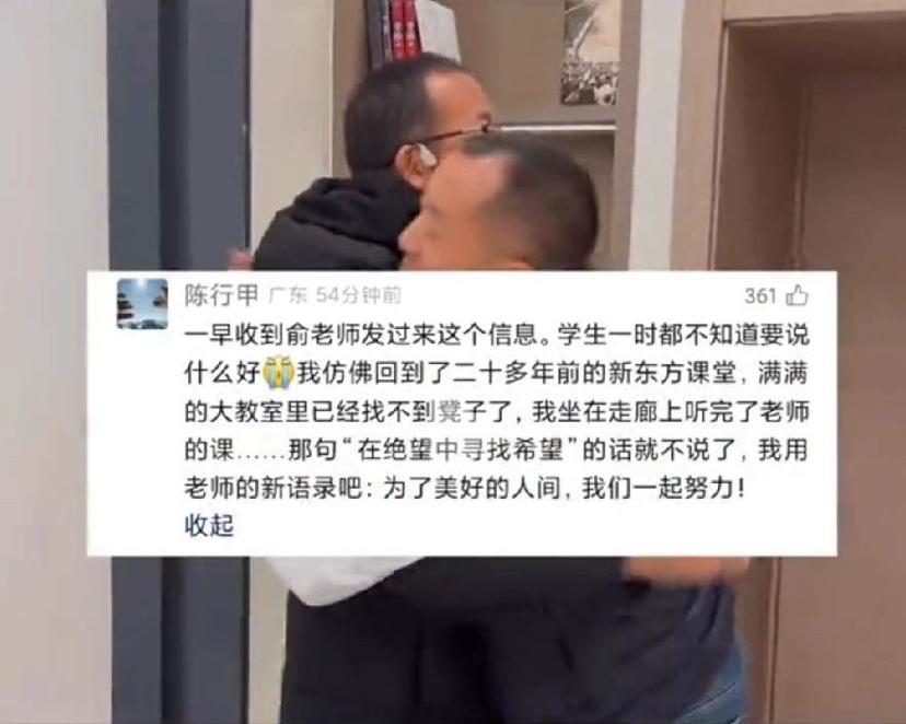 陈行甲刚刚回应了150万年薪,他叫俞敏洪老师,一早收到俞老师发过来这个信息。学生一时都不知道要说什么好,他仿佛回到了二十多年前的新东方课堂,满满的大教室里已经找不到凳子了,他坐在走廊上听完了老师的课.…那句“在绝望中寻找希望”的话就不说了,他用老师的新语录吧:为了美好的人间,我们一起努力! 俞敏洪62年虎, 陈行甲71年猪, 二人差了将近10岁 一个清华的高材生,一个北大的高材生,为陈行甲、俞敏洪的慈善公益贡献点赞,他们是社会爱心的引路人,精神文明的使者。俞敏洪和陈行甲都是胸怀大爱的人 真正的善良从来不是穷大方,而是有能力把事情做得更长远,陈行甲拿这150万,不是为了个人享受,而是能用这份收入和影响力,带动新东方每年捐出100万,让公益的雪球越滚越大,他带来的社会价值,早已远远超过了这150万的数字。 陈行甲和俞洪敏这俩人,从骨子里都是善良之人,他们惺惺相惜,志趣相投,相互提携,共创未来,可喜可贺! 俞敏洪,1962年出生于江苏省江阴市夏港街道葫桥村,今年6 4岁,北京大学毕业。英语教学与管理专家,新东方教育集团创始人。现任新东方教育科技集团董事长、总裁,东方甄选CEO(兼任)、法定代表人、经理、董事,洪泰基金联合创始人 陈行甲,湖北省兴山县人,1971年出生,今年55岁,清华大学公共管理硕士。陈行甲为知名公益人、作家,曾任湖北省恩施土家族苗族自治州巴东县委书记。深圳市恒晖公益基金会创始人、理事长俞敏洪 陈行甲访谈录 陈行甲俞敏洪 馆长陈行甲 俞敏洪简史 俞敏洪开箱