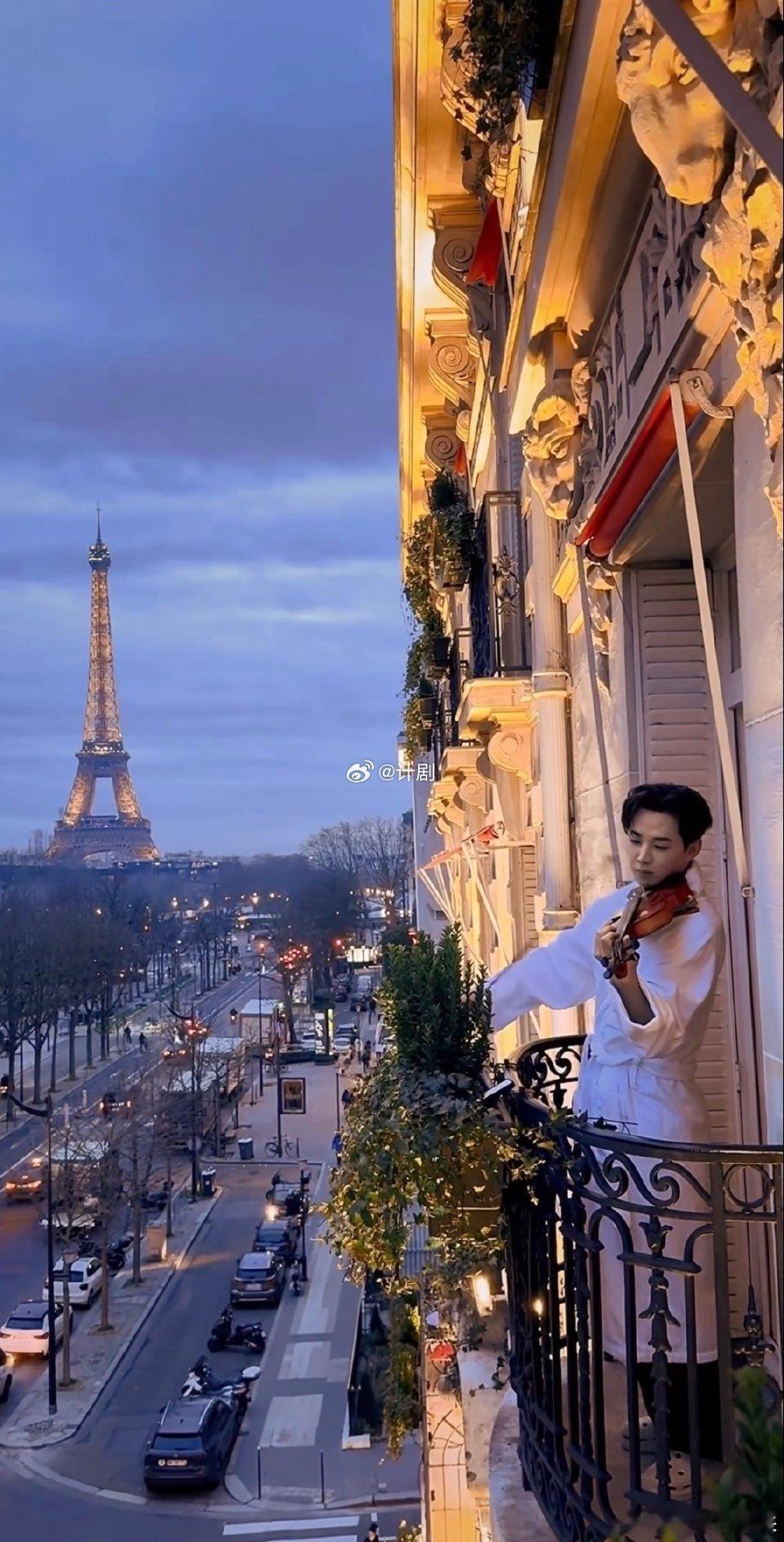 刘宪华穿着浴袍在阳台拉琴 阳台成了最自然的表演空间。琴声飘向夜空,灯光点缀背景,这种沉浸式的演奏状态很有感染力。