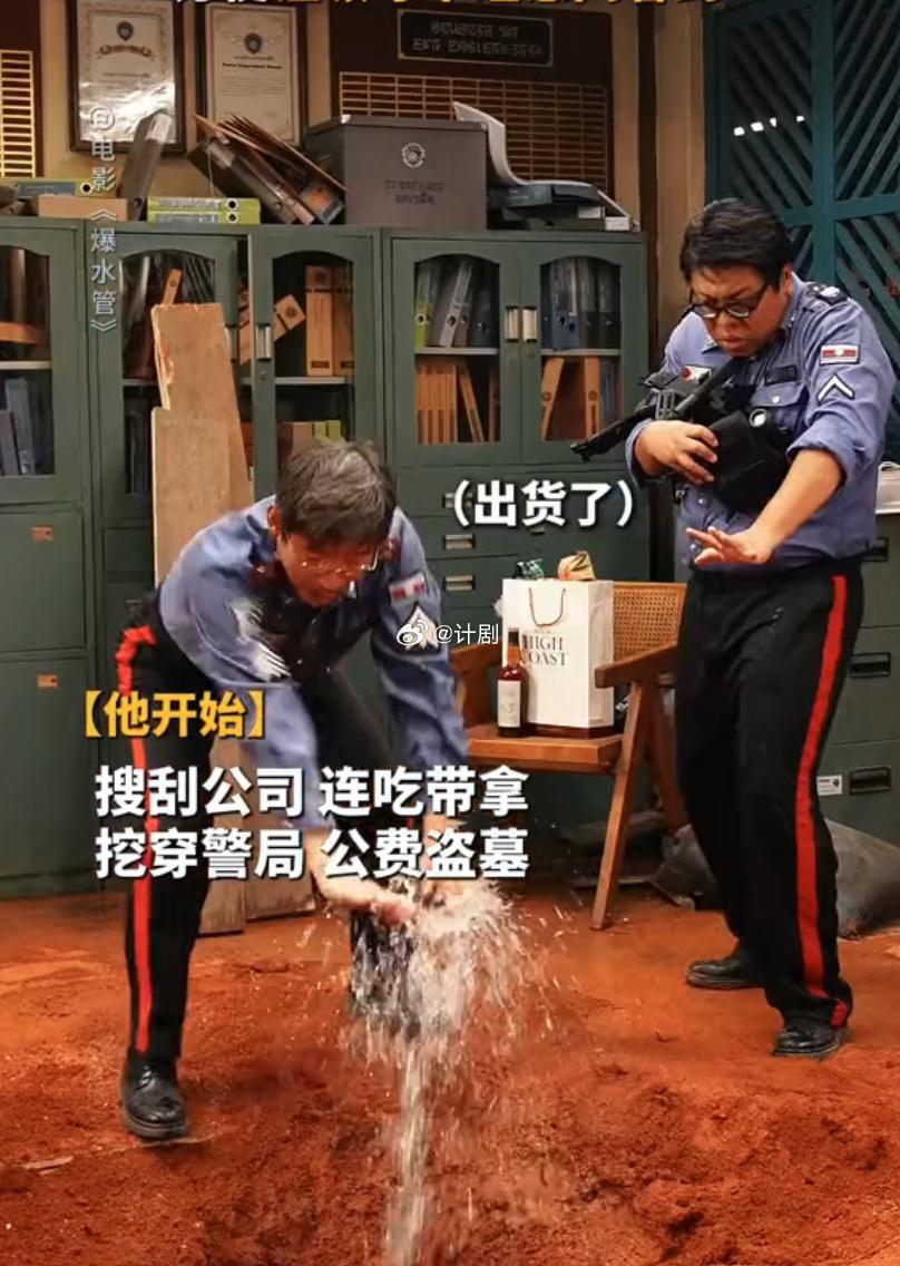 谁家把喜剧拍成了今日说法了 最离谱的是古墓就在警局地下。这种设定本身就充满荒诞感,难怪观众都说要去组团挖宝,现实和剧情都分不清了。