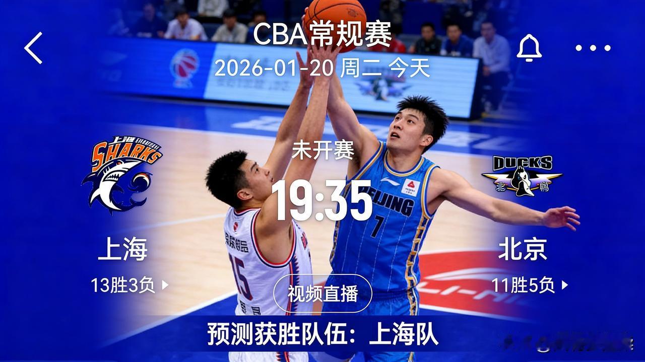 今日CBA篮球联赛焦点战,上海VS北京。 上海大鲨鱼🦈队,目前士气正旺,球队目