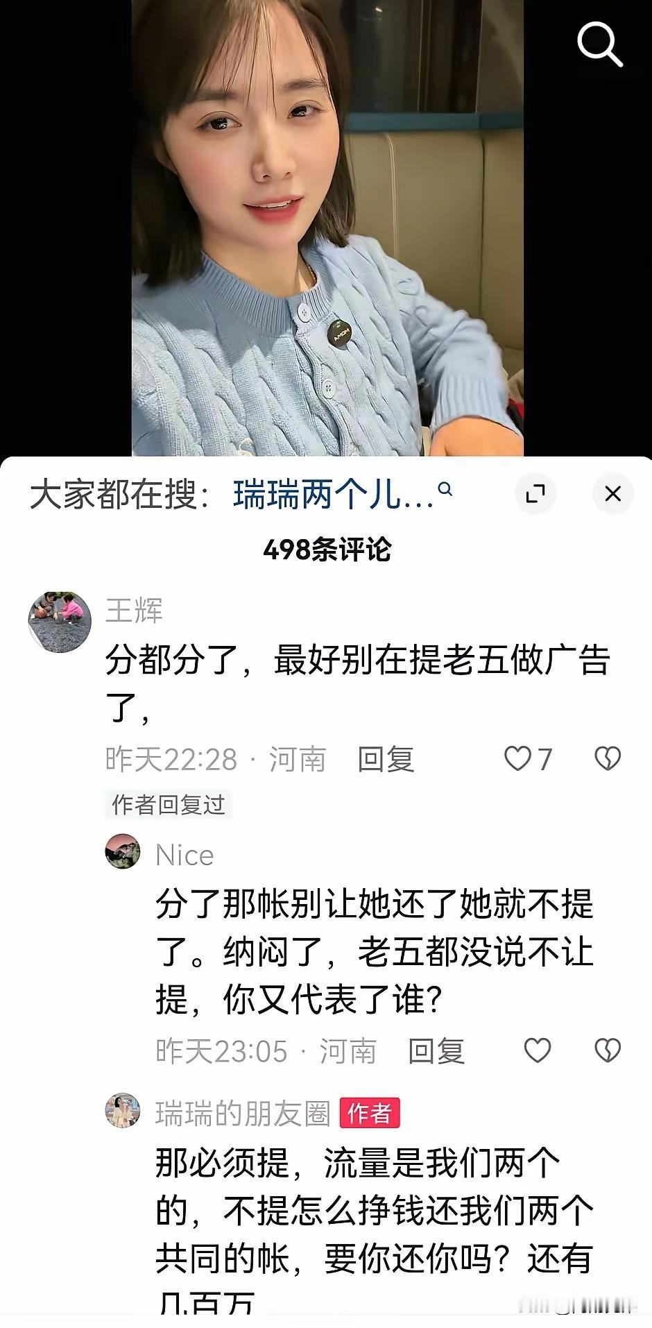 没完了这是。 瑞瑞,晋老五一天天的在网络上各种露脸,制造着各种新闻,只为一个目的,增加流量,带货赚钱。 这些所谓的网红们,到底是哪些人在关注并炒作着他们?对社会毫无贡献,对公益毫无益处。 现在是很直白的在告知:没有流量怎么挣钱?粉丝们难道看不明白吗?人家的表演就是为了掏空你的口袋而已。