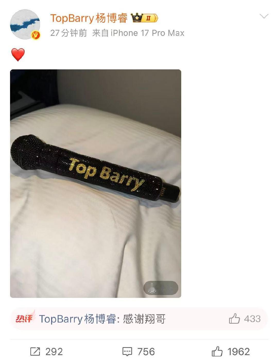 杨博睿说感谢翔哥严浩翔送杨博睿定制麦严浩翔送杨博睿定制麦~咱就是说真的好漂亮啊!!!