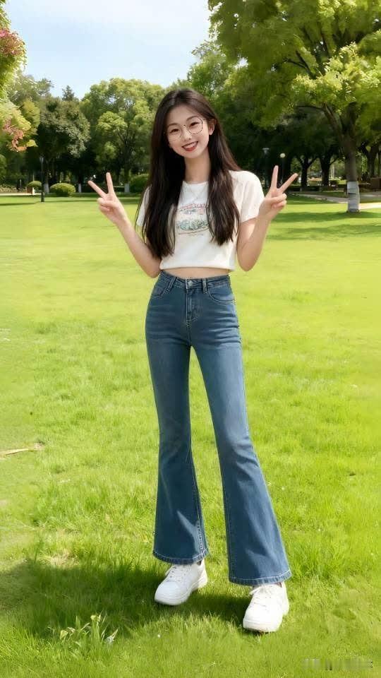 田园风光中的甜美笑容,黑衣蓝裤的时尚穿搭,尽显自然与优雅的完美结合。🌿💃🌸