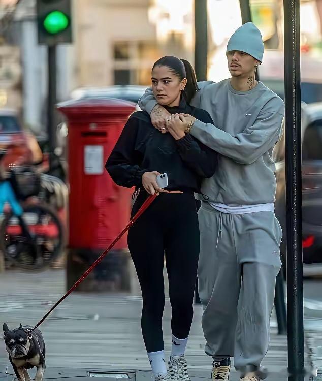 贝克汉姆二儿子罗密欧和女友一起逛街遛狗,这个女友据说是大儿子布鲁克林的绯闻前女友