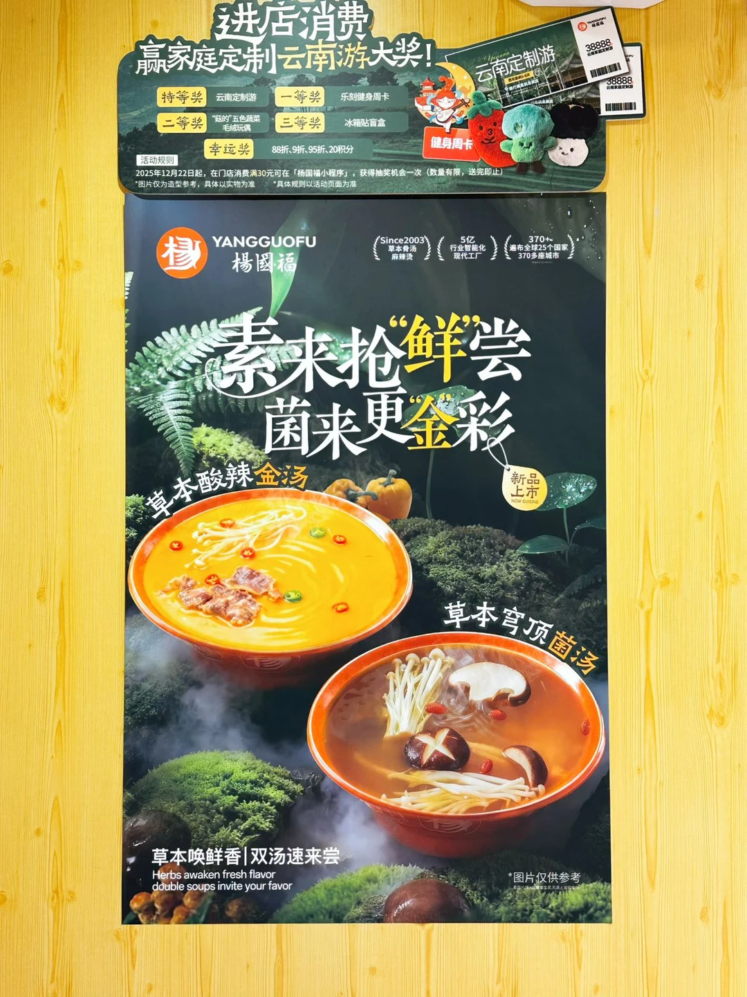 [自拍R]下班去东方新天地逛街,路过杨国福 发现竟然上新了全素的【草本穹顶菌汤】 天冷了,正好想喝点暖的 [哇R]先尝了一口原汤,菌菇味很鲜,能喝出好几种菇的香味 汤底清爽不腻,感觉整个人都暖和了 这汤底真是放啥都好吃 我又加了点自己调的麻酱和辣椒 味道层次更足了 这一碗热乎乎的菌汤麻辣烫 [皱眉R]真是为我们打工人量身定做的!