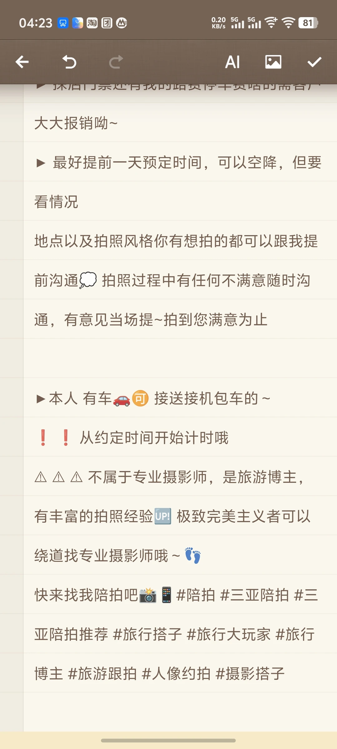 地点以及拍照风格你有想拍的都可以跟我提前沟通💭 拍照过程中有任何不满意随时沟通,有意见当场提~拍到您满意为止