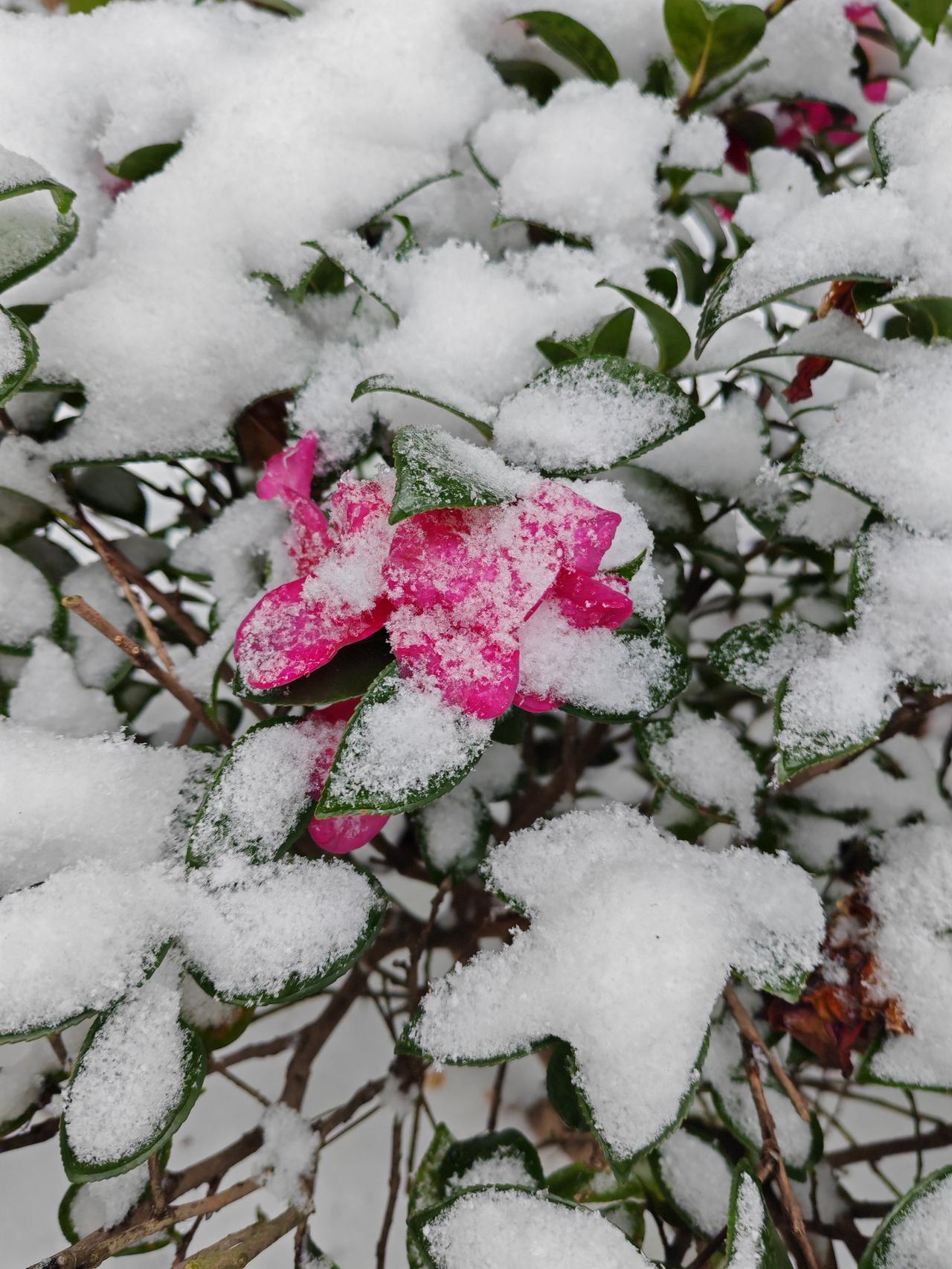 晒图笔记大赛下午出去拿快递,看到雪中茶梅花,是不是很美?