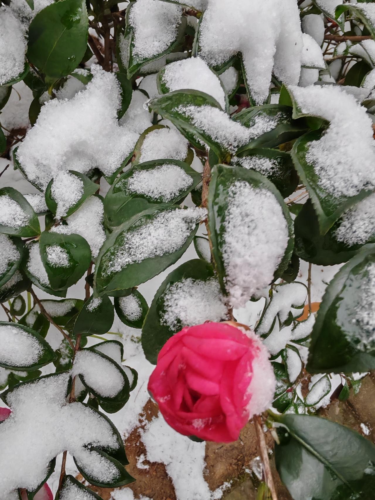 晒图笔记大赛还是雪中茶梅花,红妆素裹,分外妖娆。
